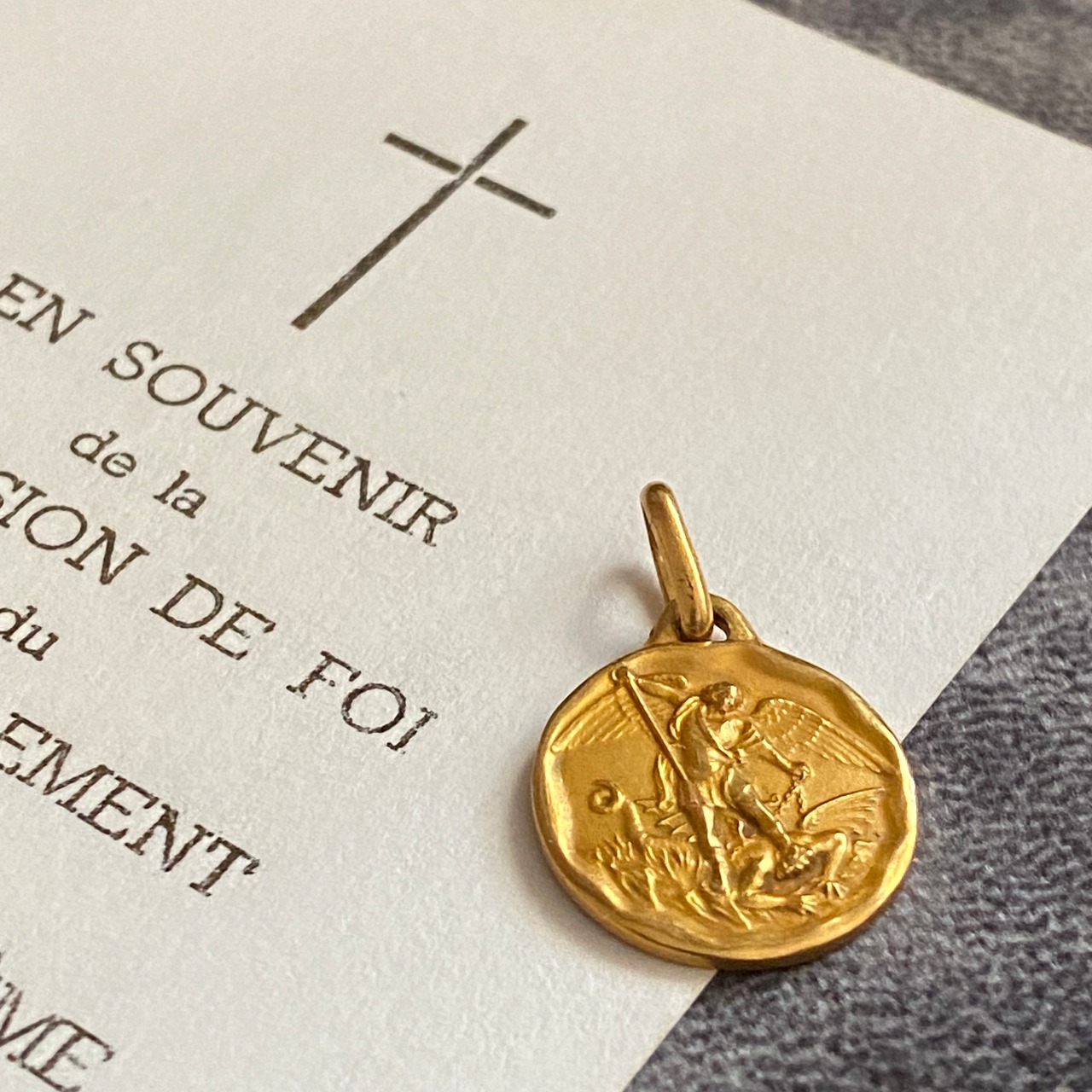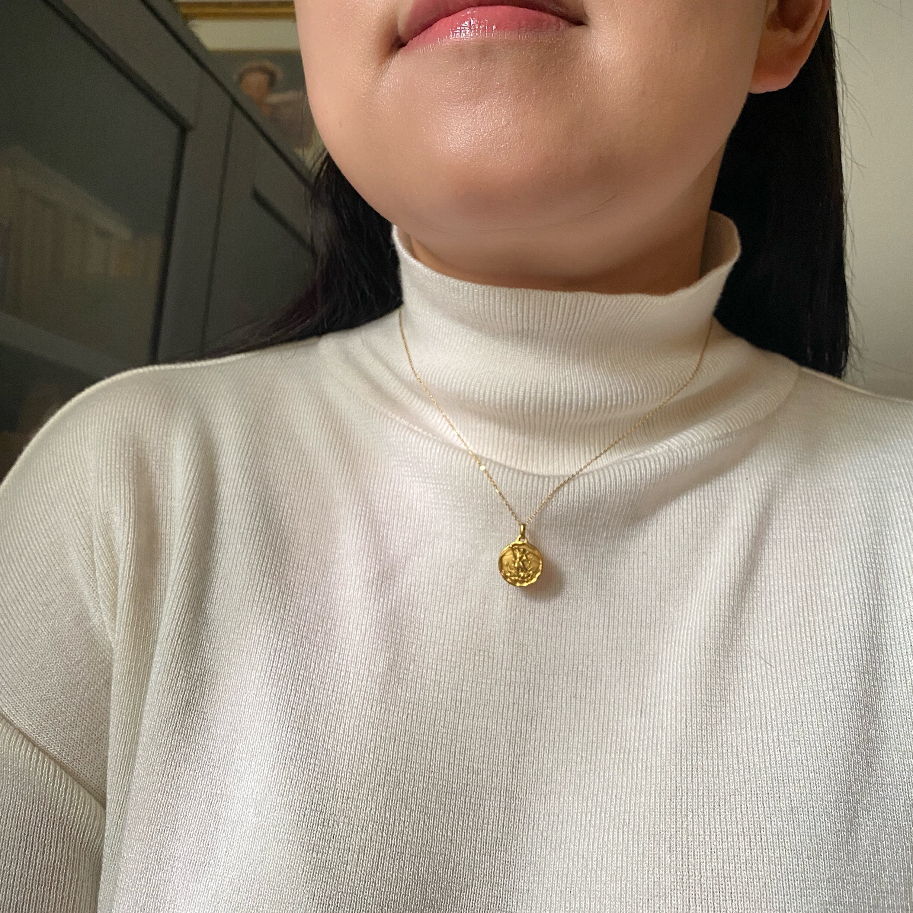 一般的なメダイに比べ、やや小ぶりのため、重ね付けもお楽しみいただきやすいデザインです。