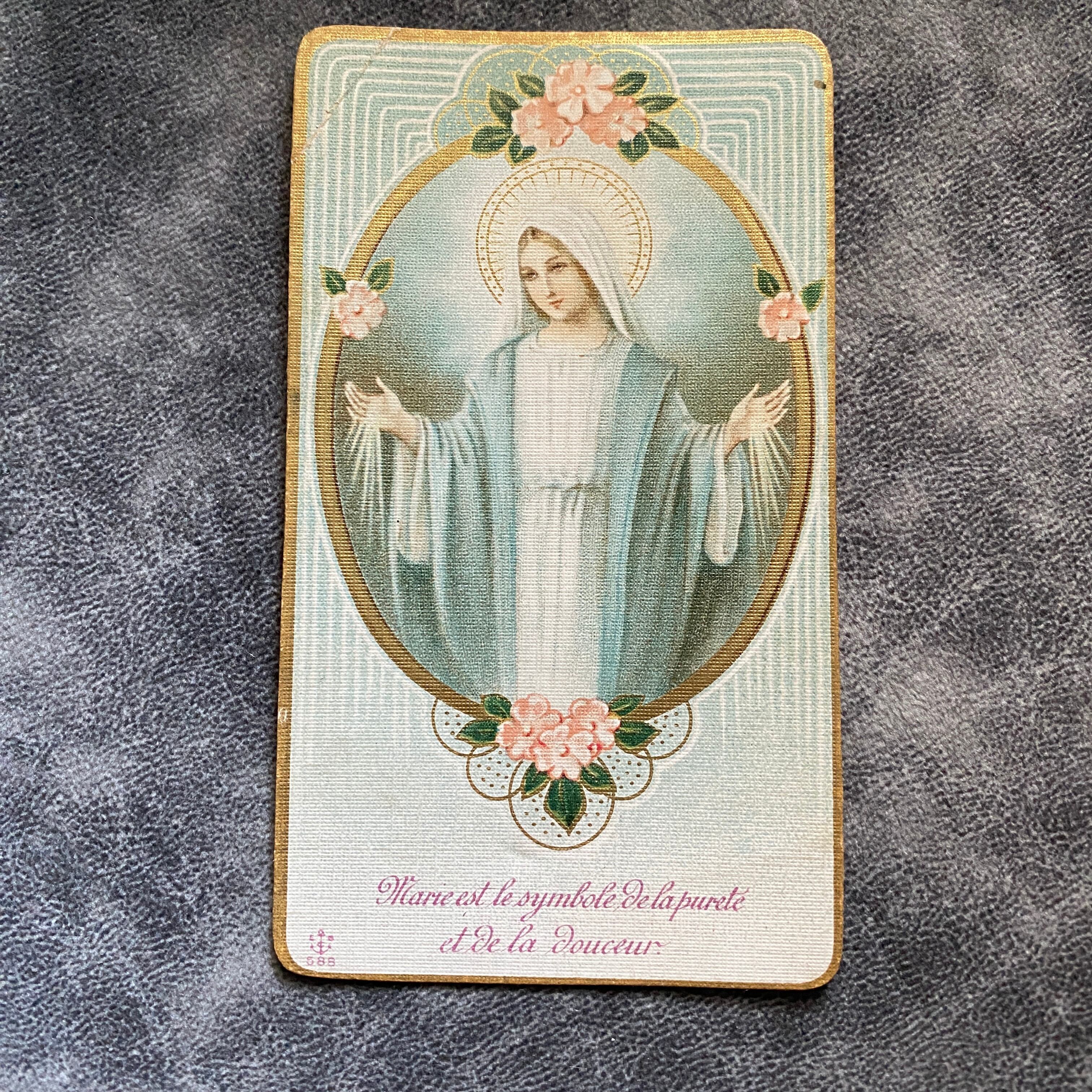 アンティークのゴールドのラインと淡いお色味が素敵な聖母マリアのHolyカードです。