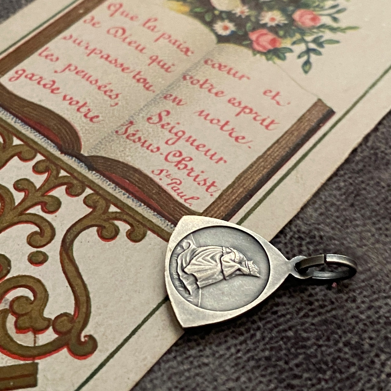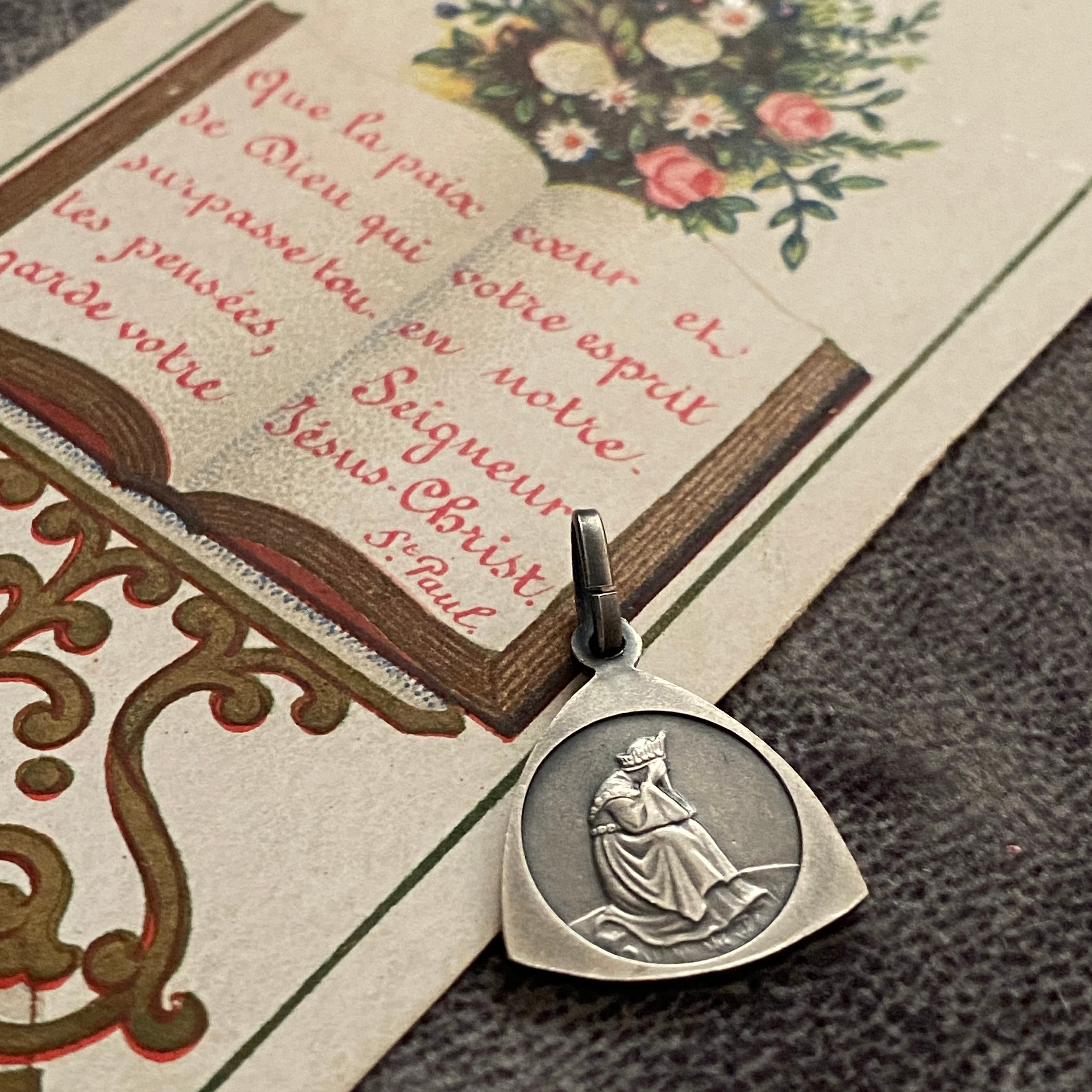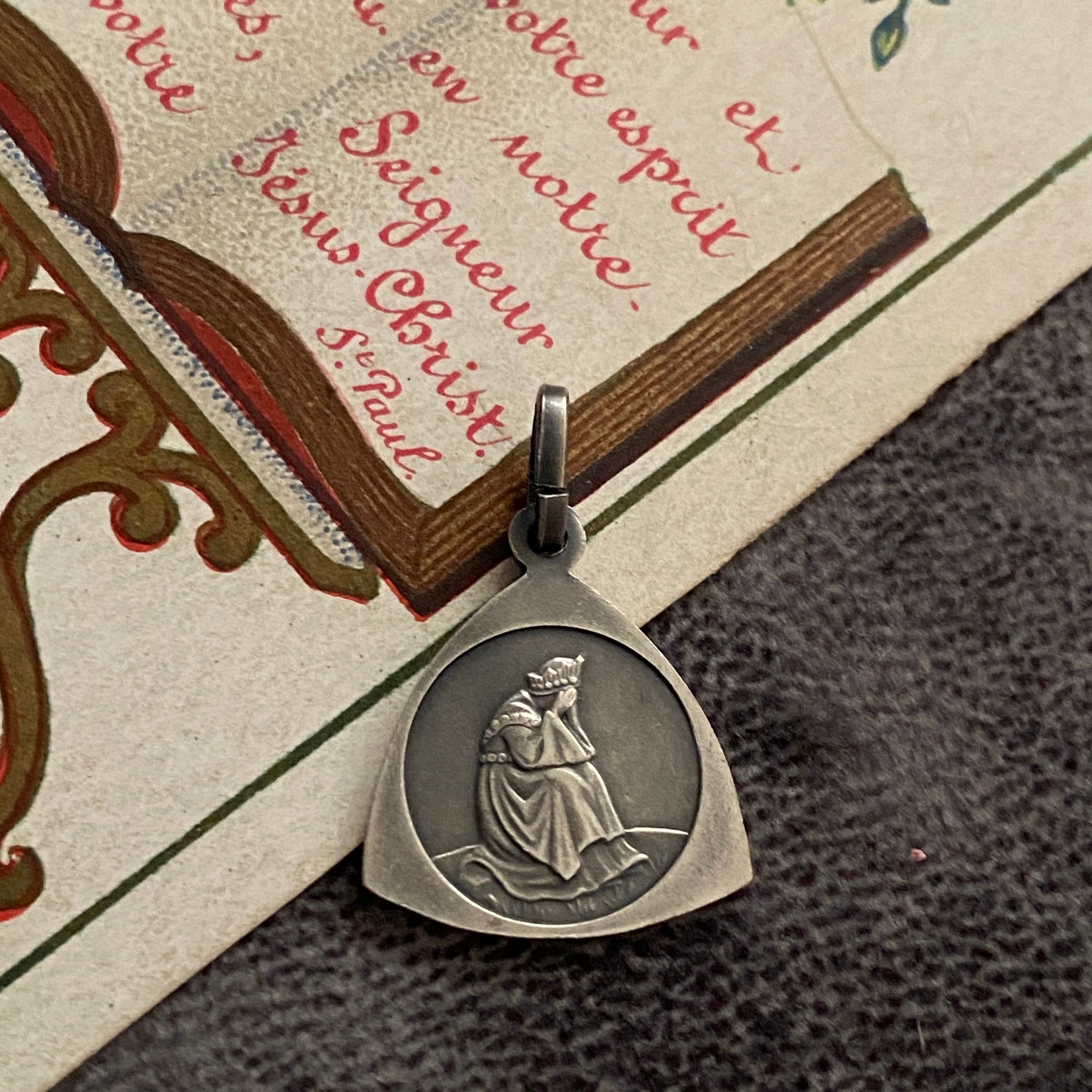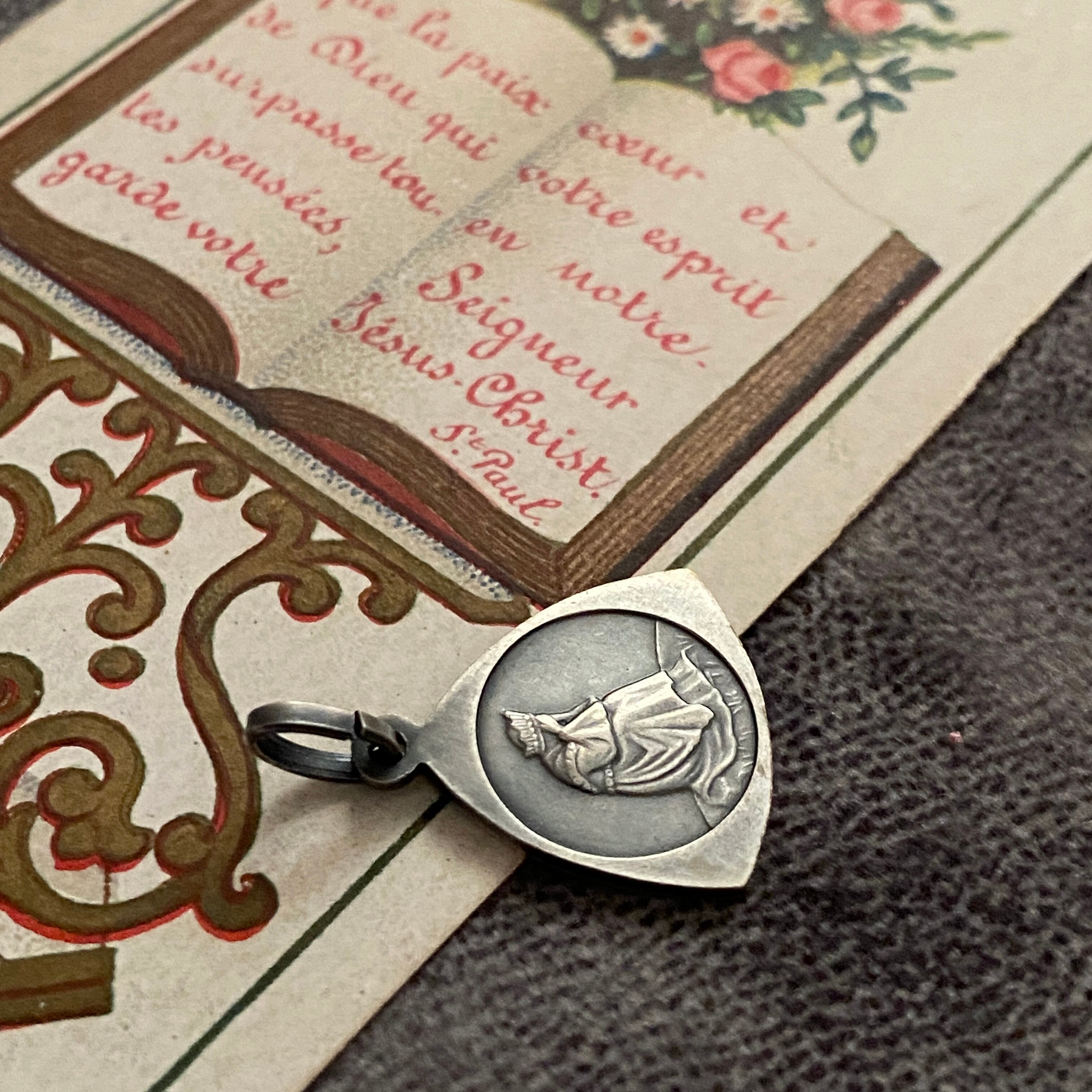 1846年9月19日、フランスのラ・サレット (La Salette) にて、牛飼いの少女メラニー・カルヴァと11歳の牛飼いの少年マクシマン・ジローの2人の子供が報告した聖母の御出現のシーンのメダイです。