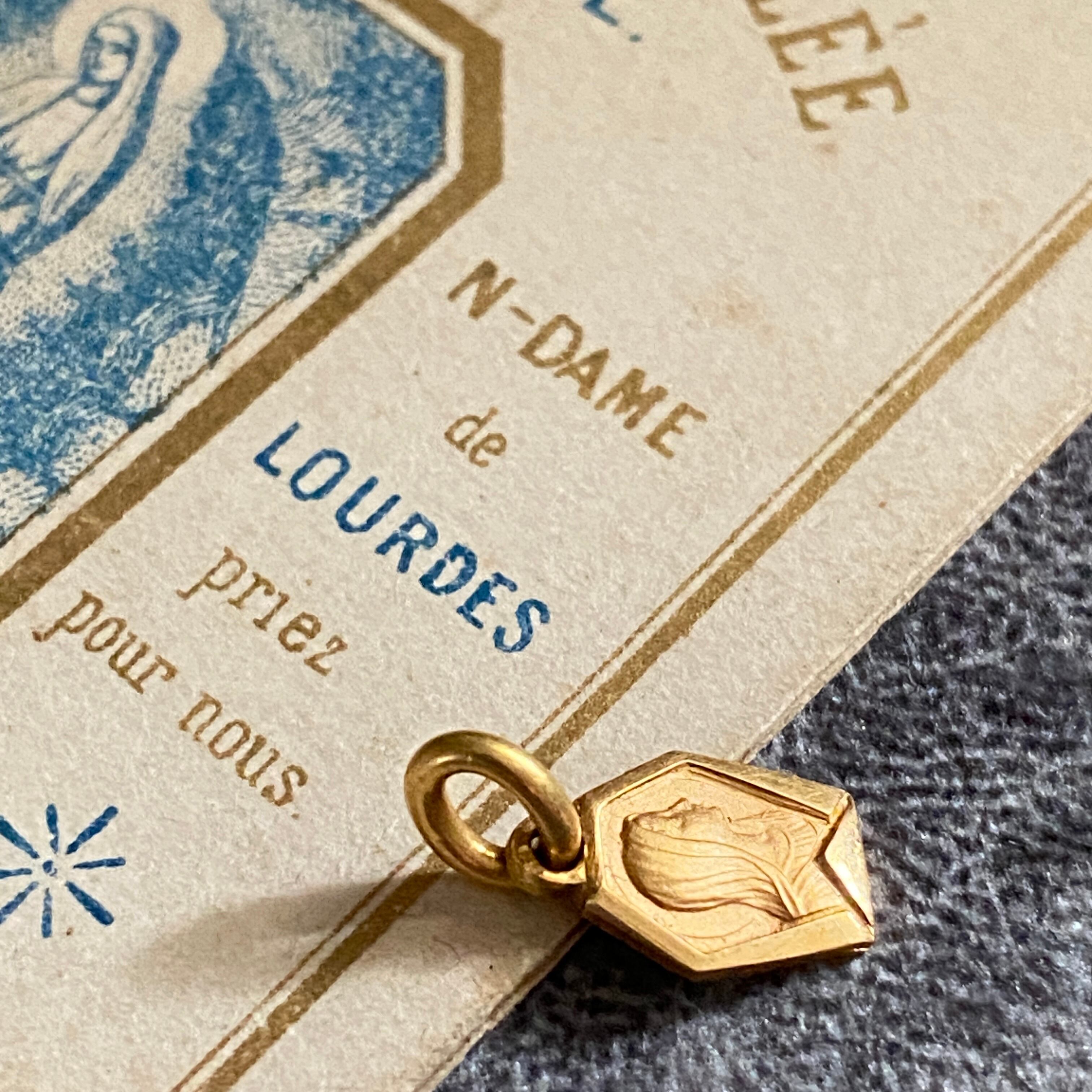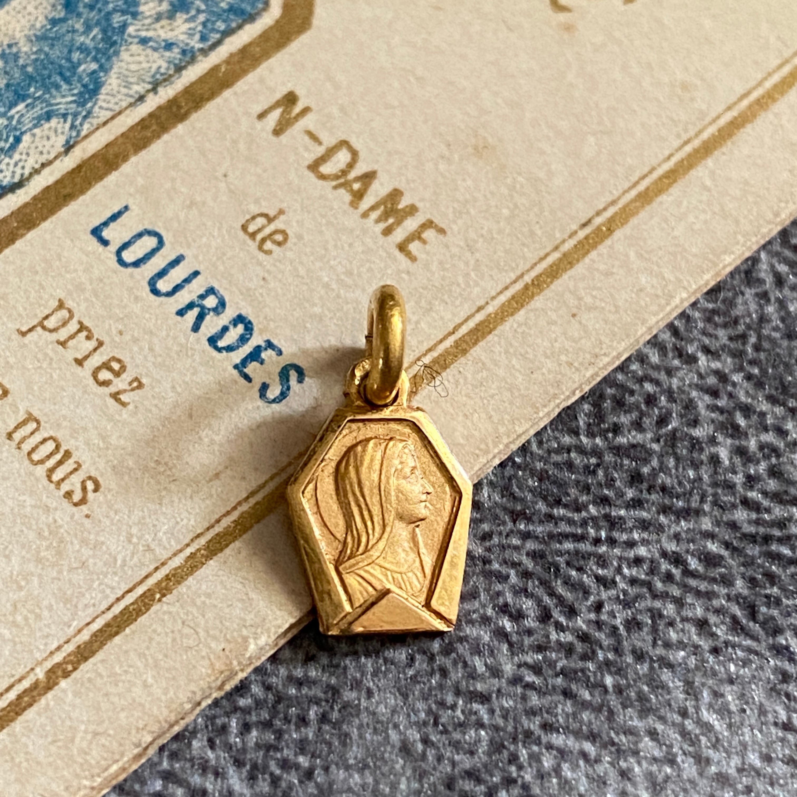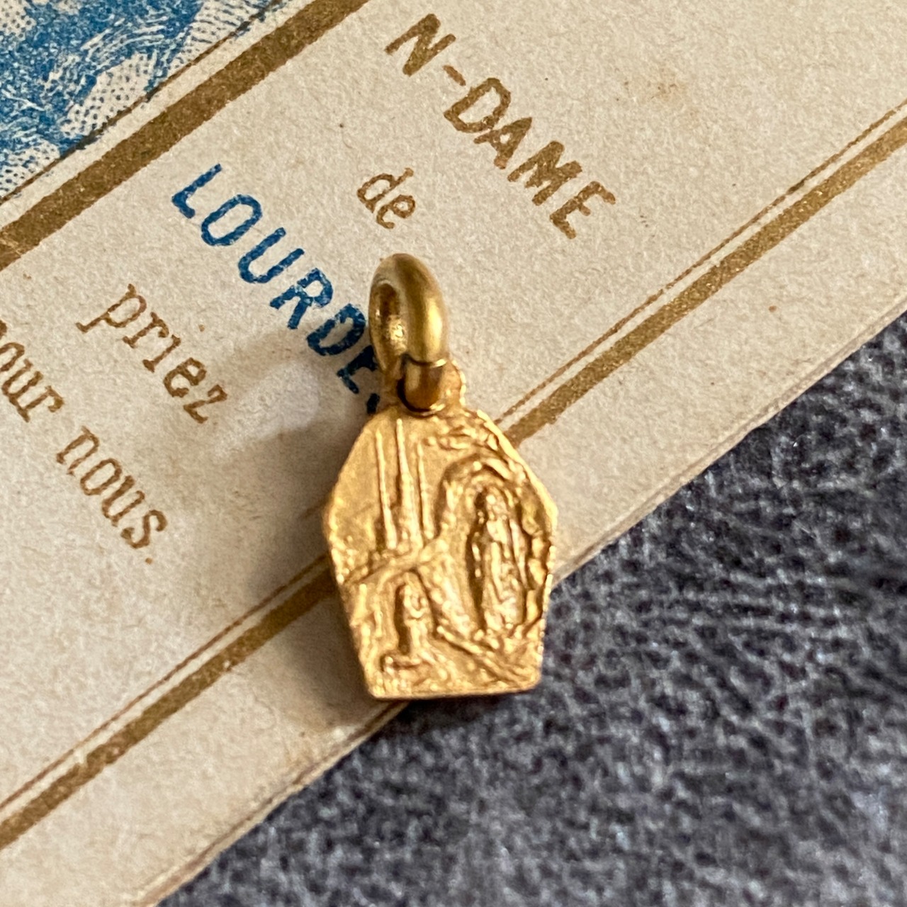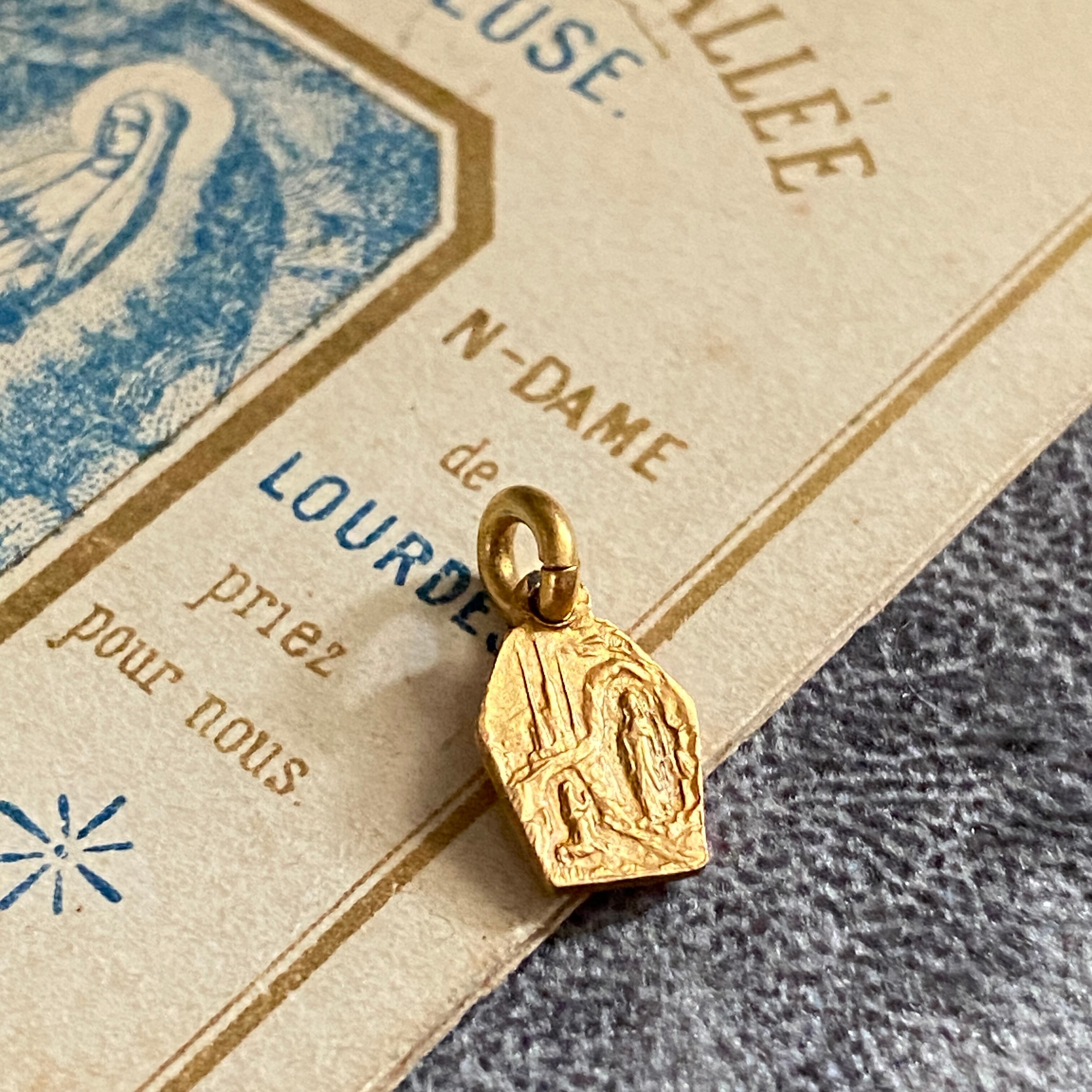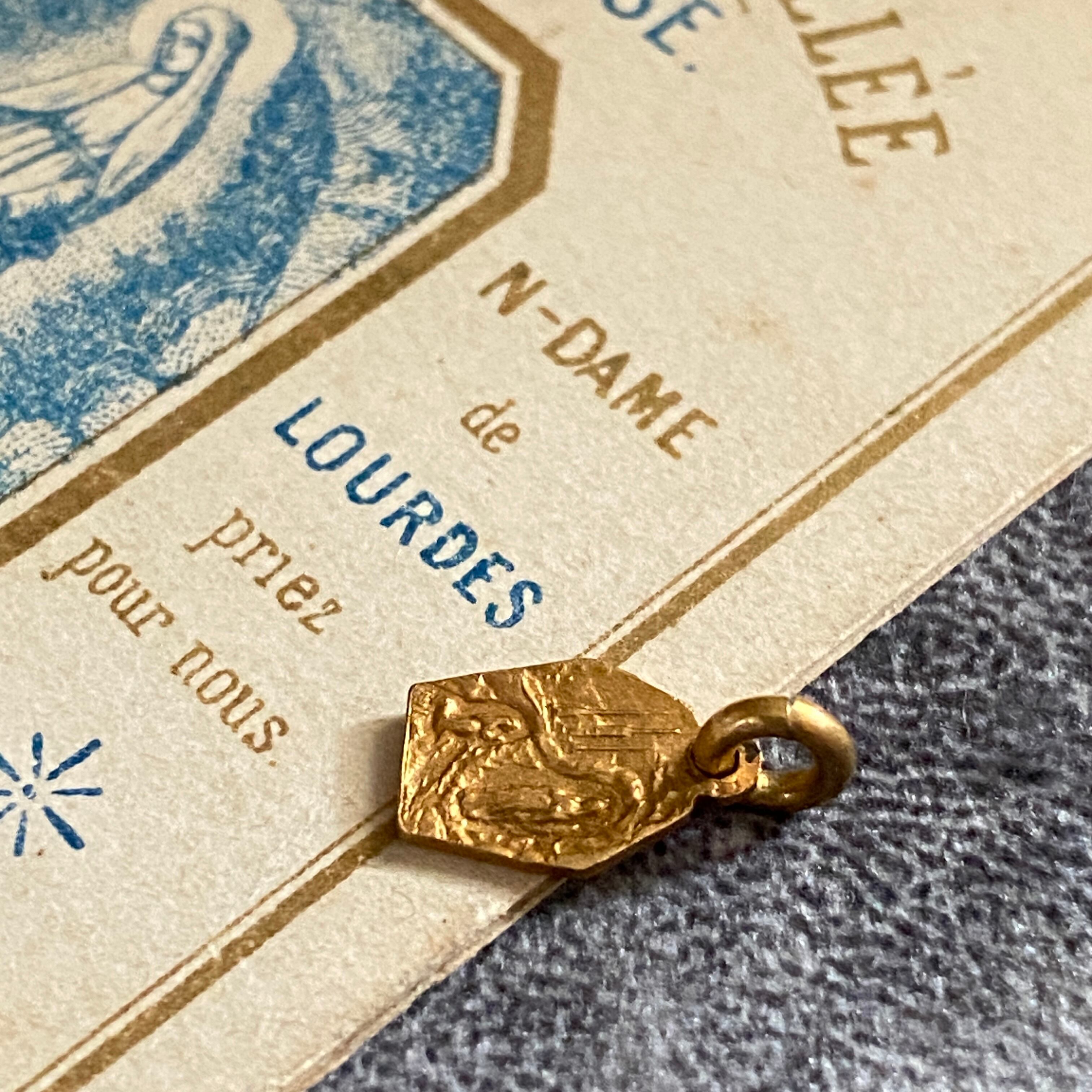 極小ながらも驚くほど丁寧に作られた、ルルドのマリアのメダイ。