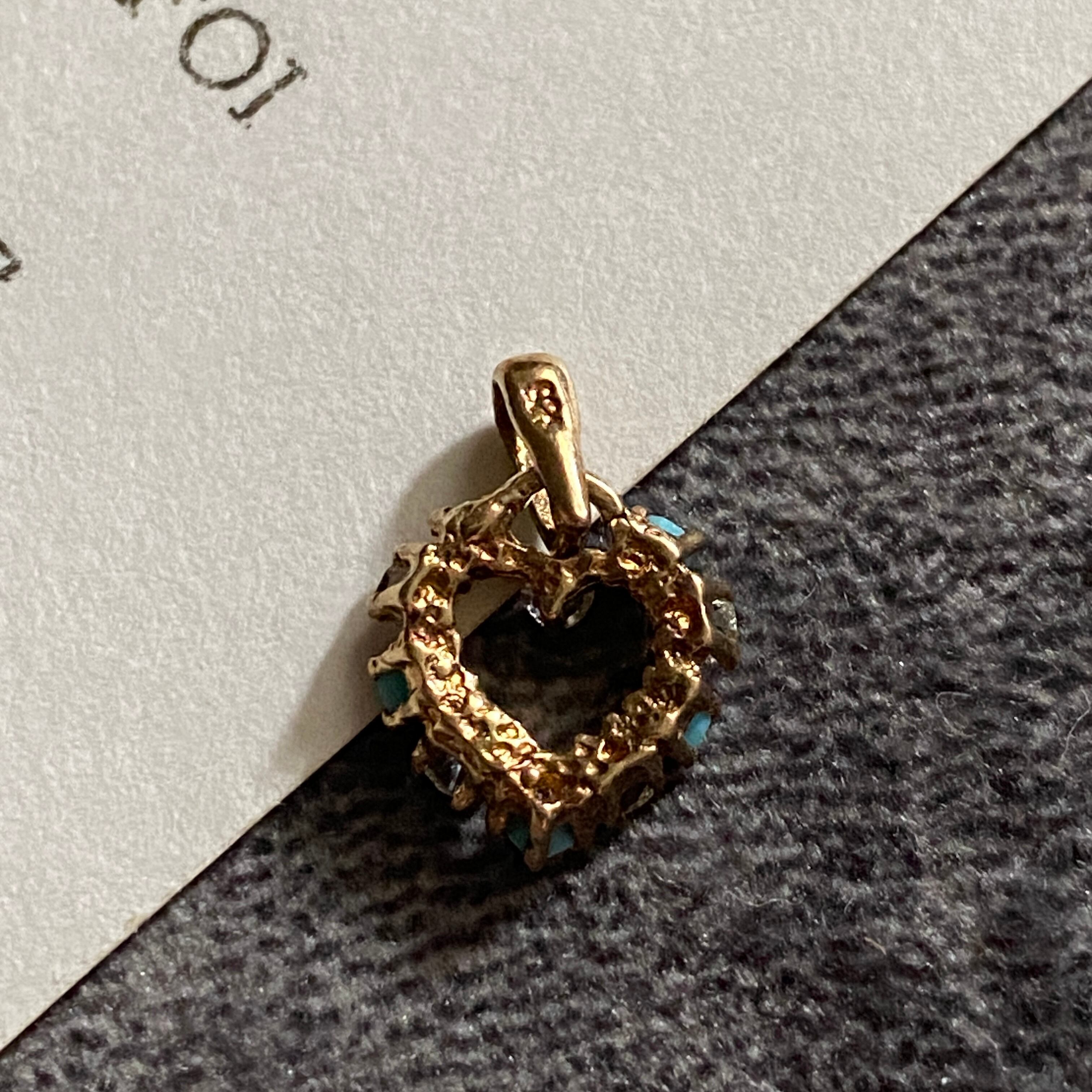 小ぶりなハートシェイプ+ターコイズは、1970年代のロンドンの工房の作品の典型で、
