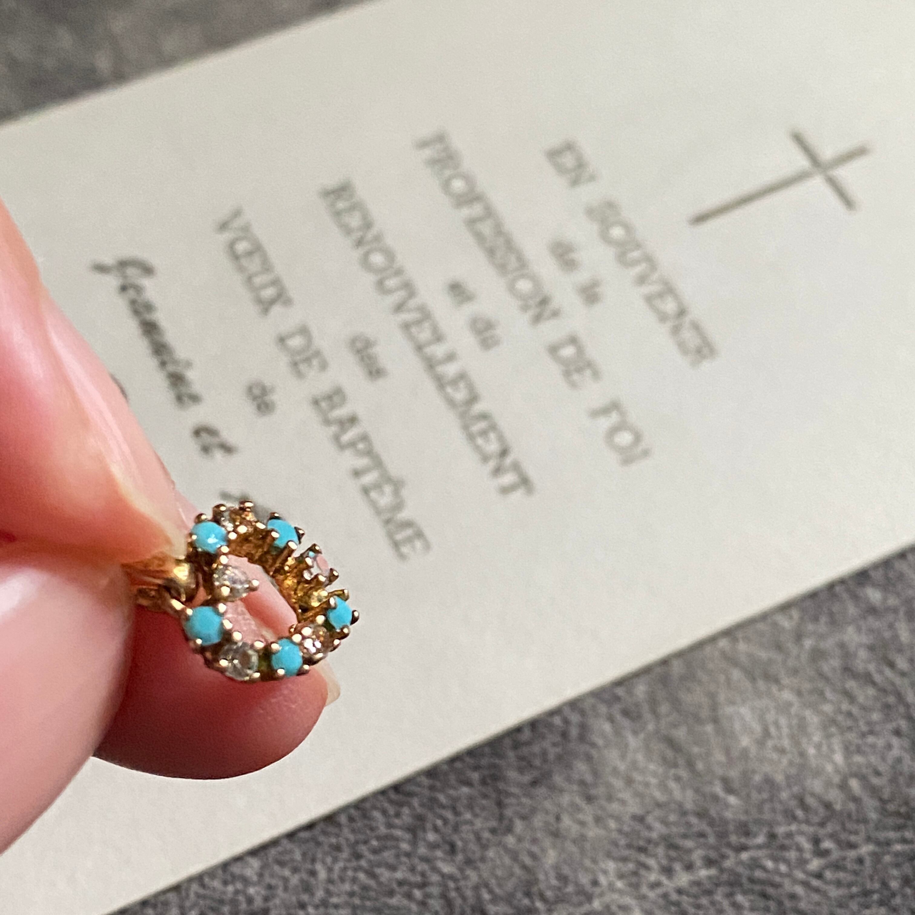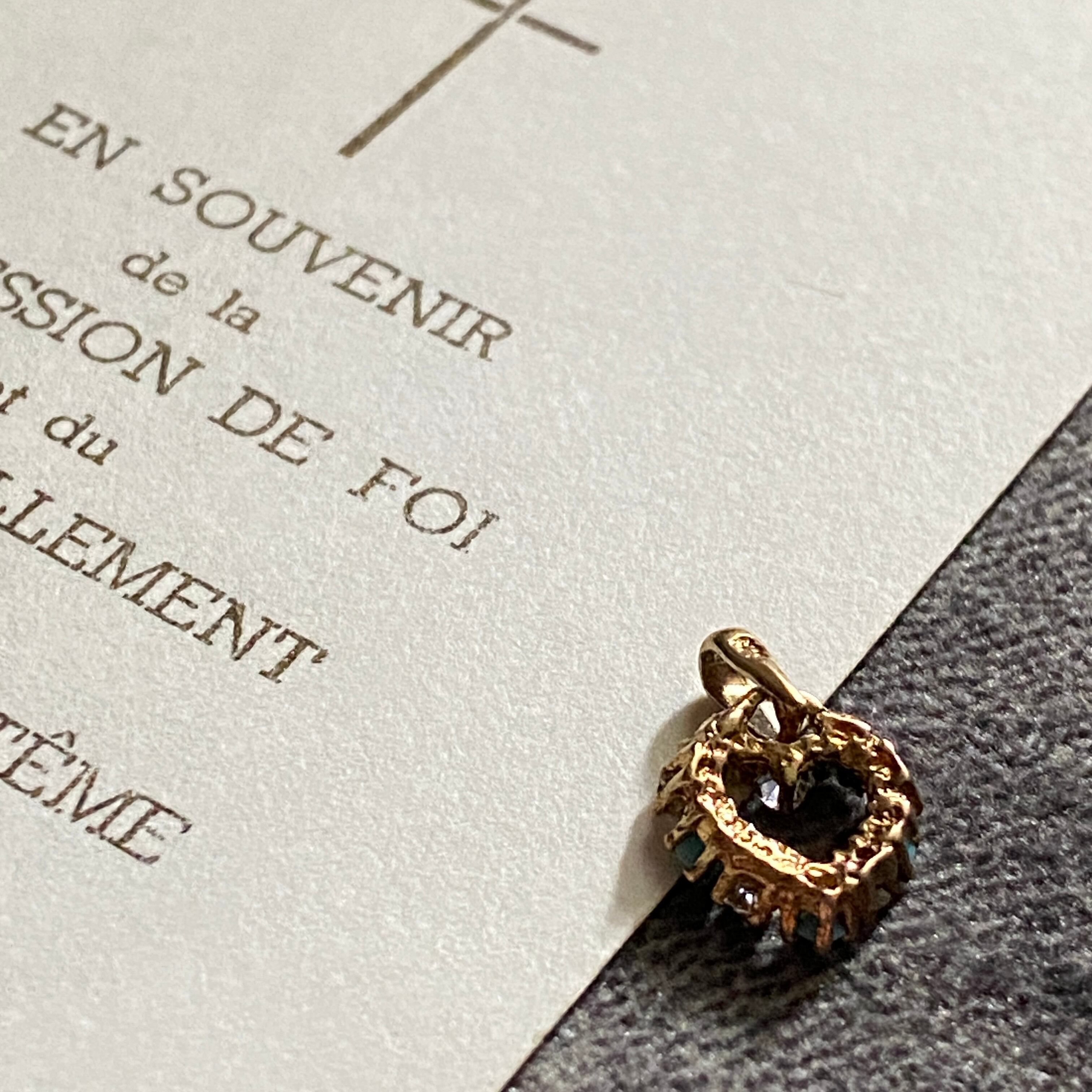 繊細なゴールドの枠はアンティーク特有の温かみを帯び、メダイとともにチェーンに重ねても可憐に映える逸品です。