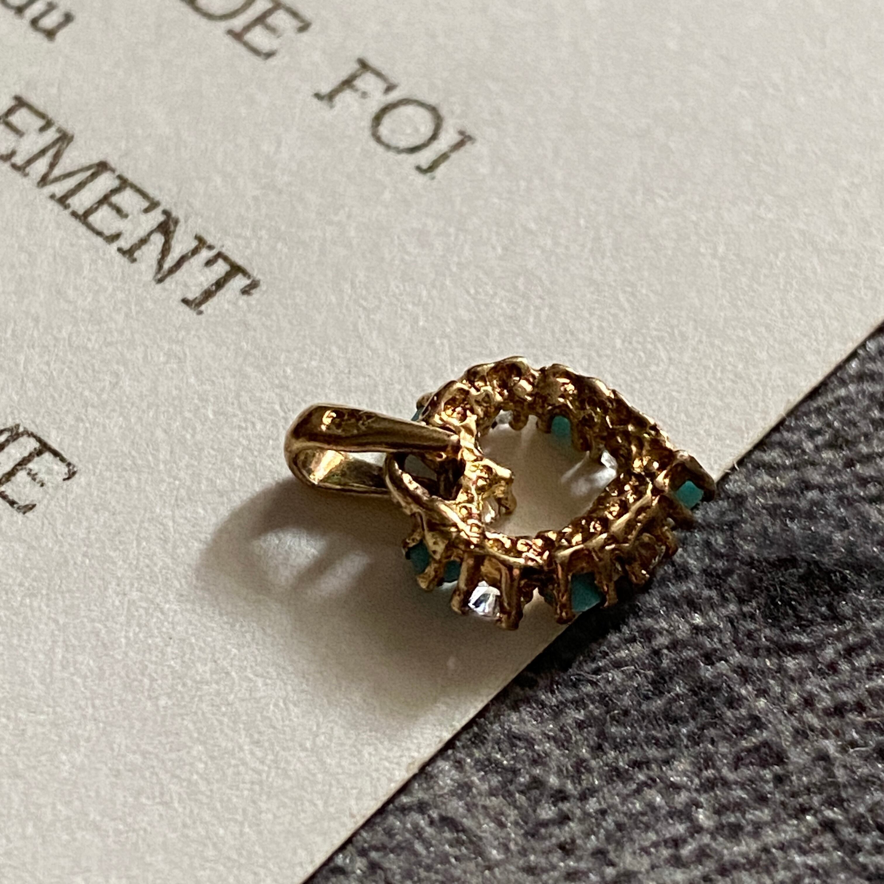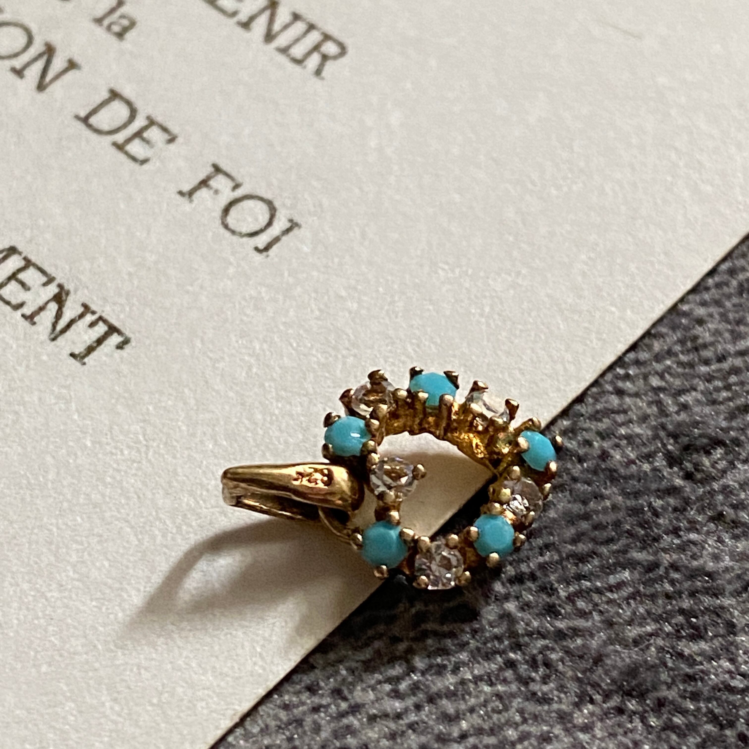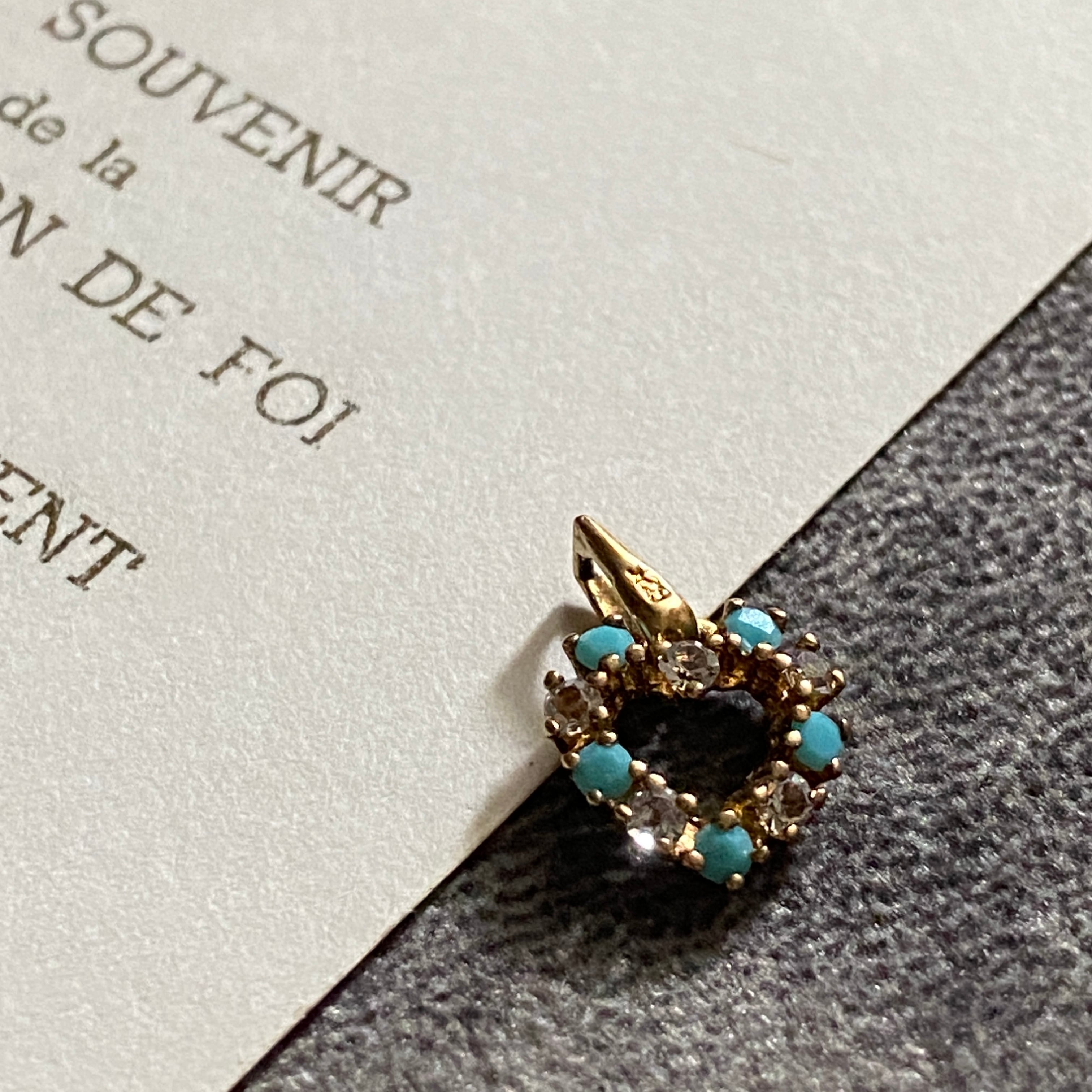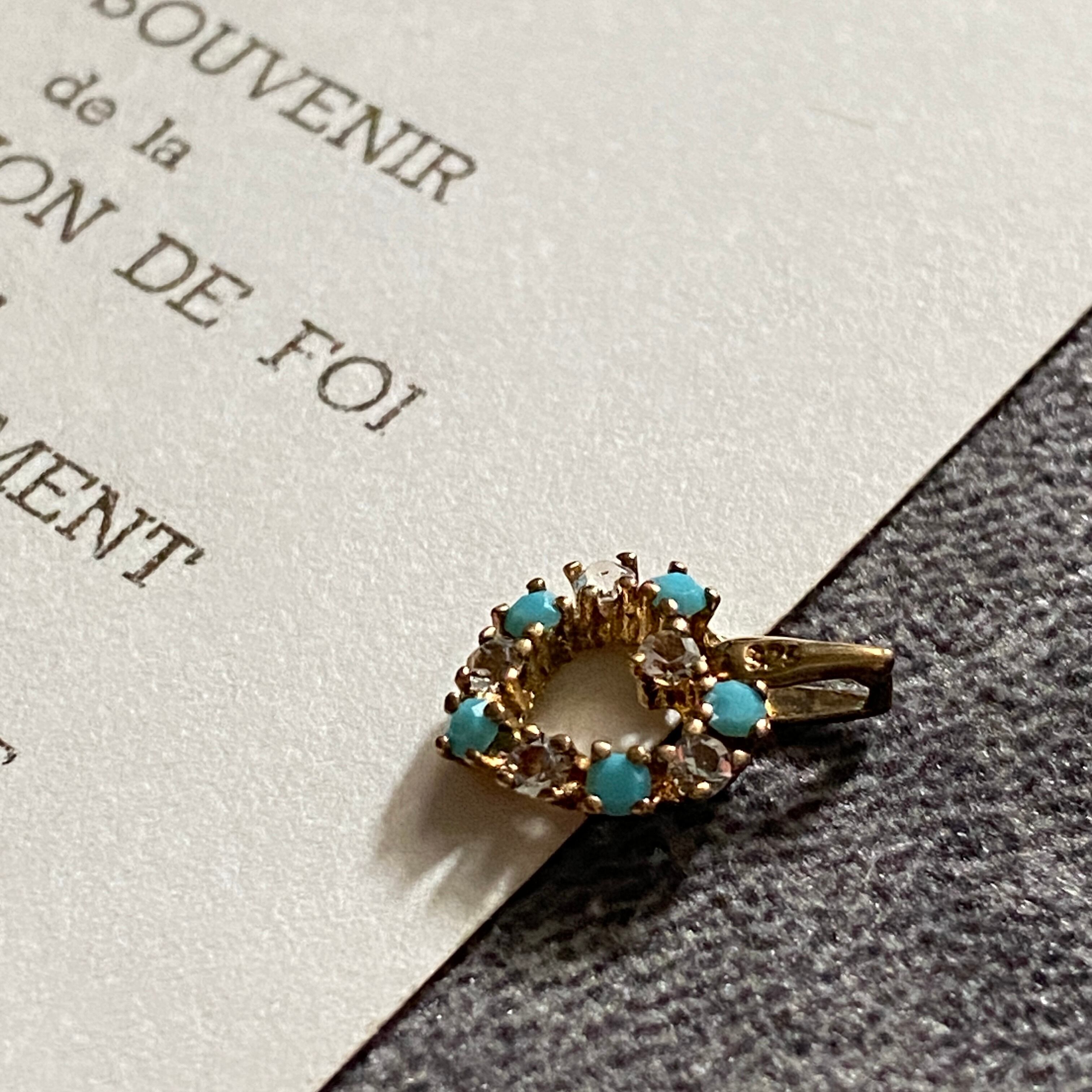 バチカンのフォルムもクラシカルで、ターコイズとジルコニアを交互に並べたハートは、小さなサイズながらも圧倒的な輝きを放ちます。