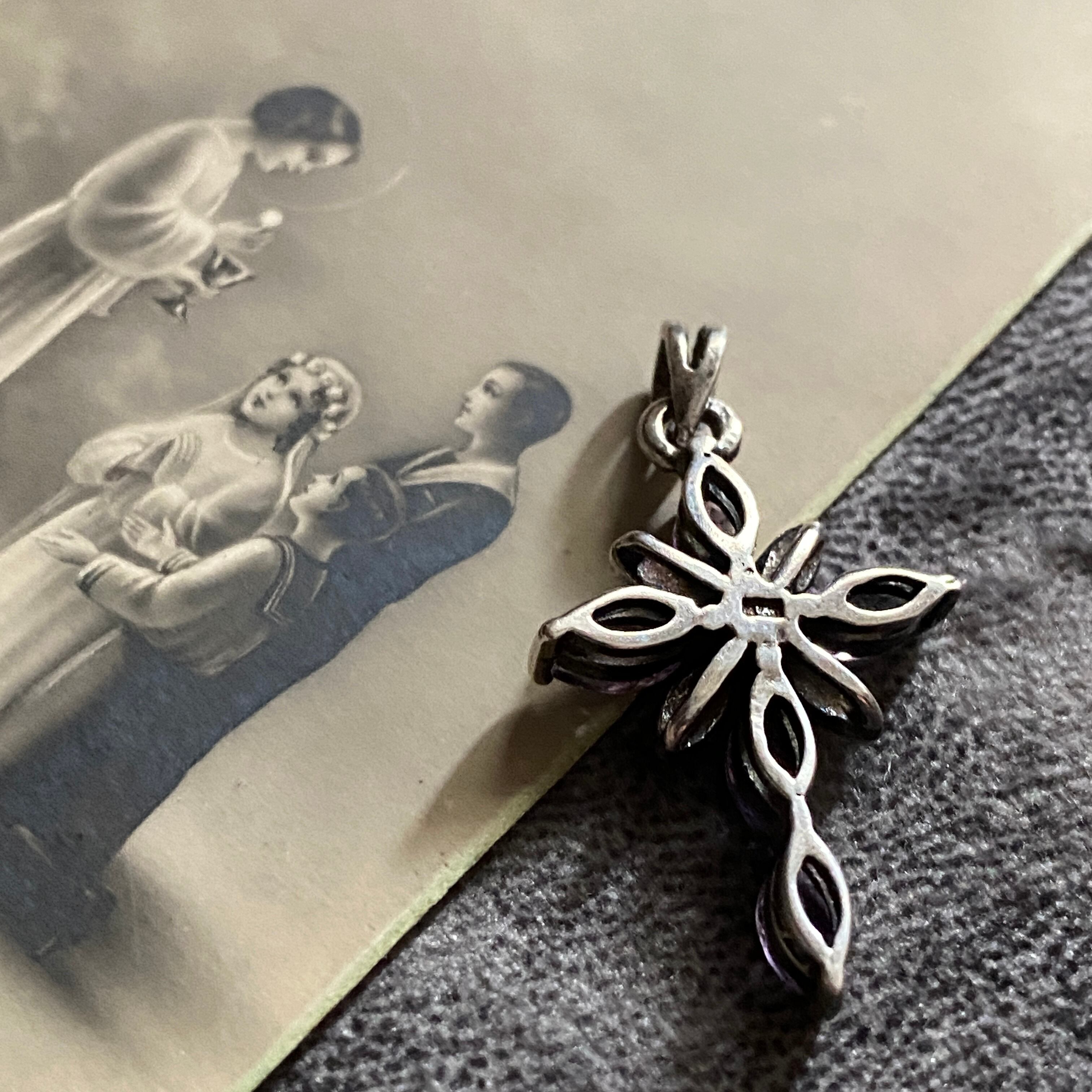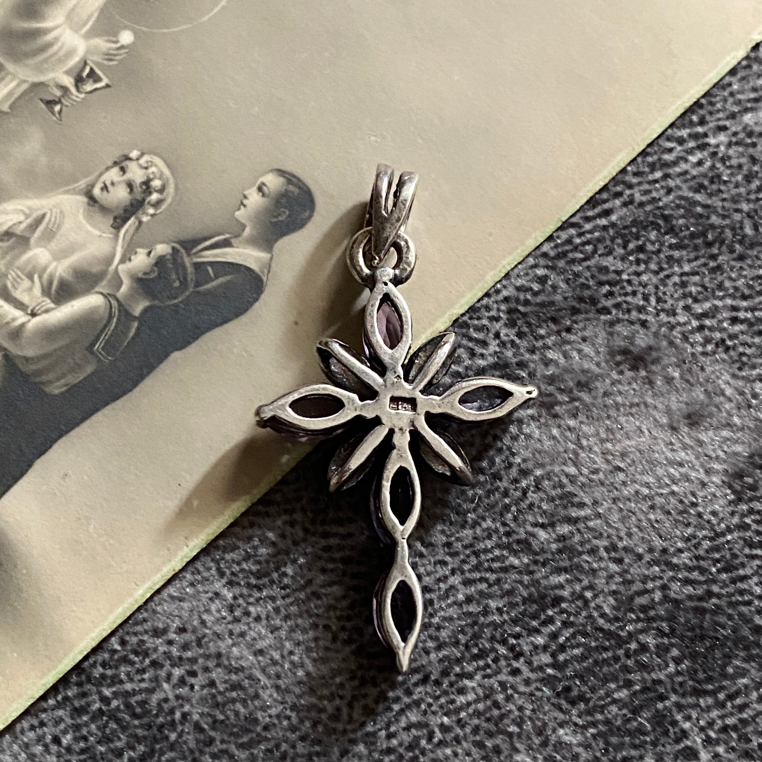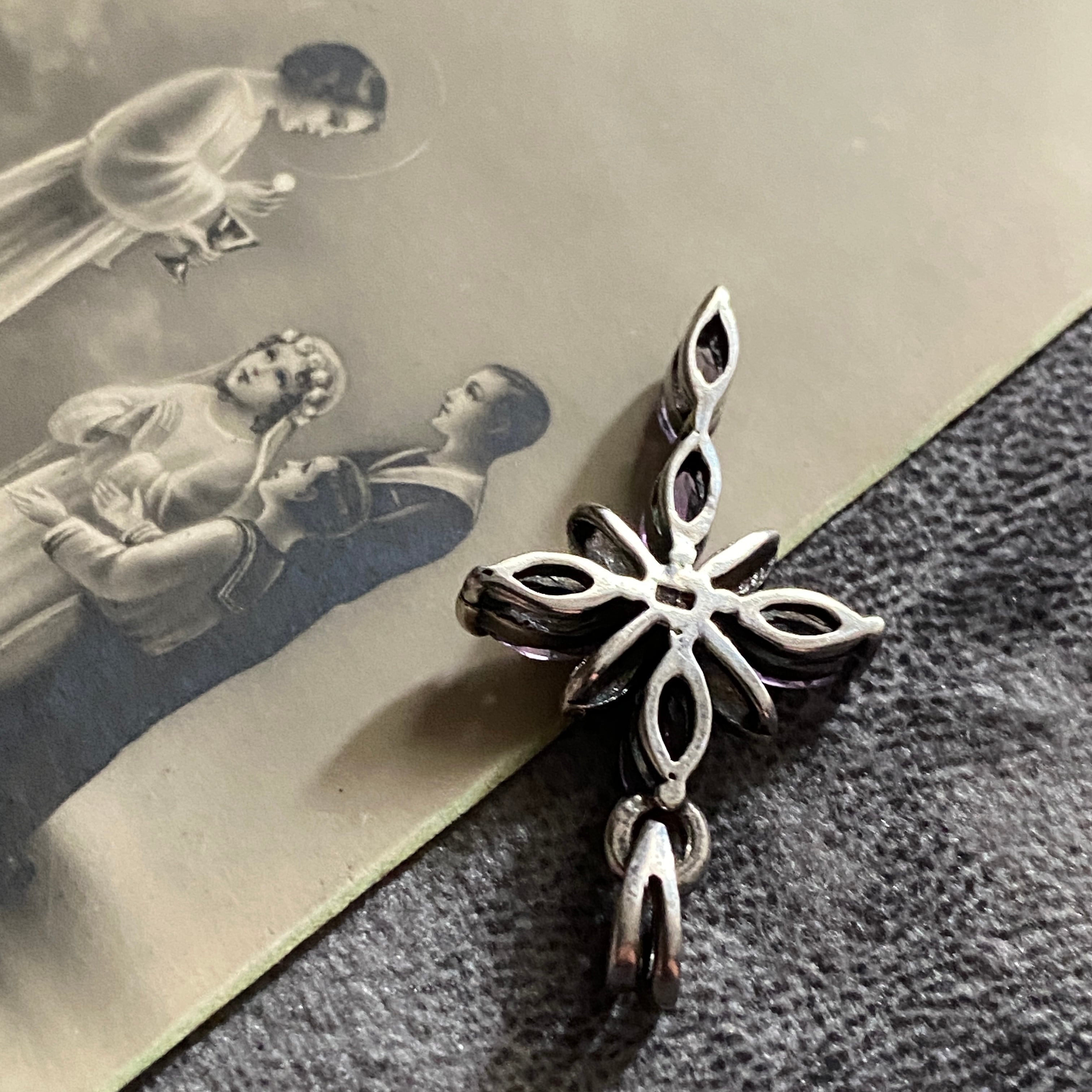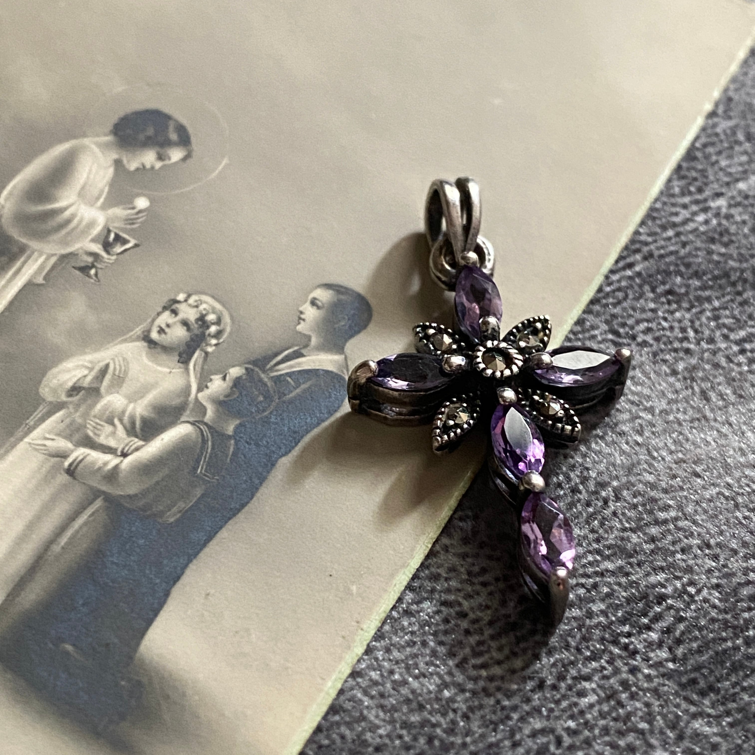 美しい紫が優しく光を返すアメジストに、銀色の輝きを放つマーカサイトを組み合わせた