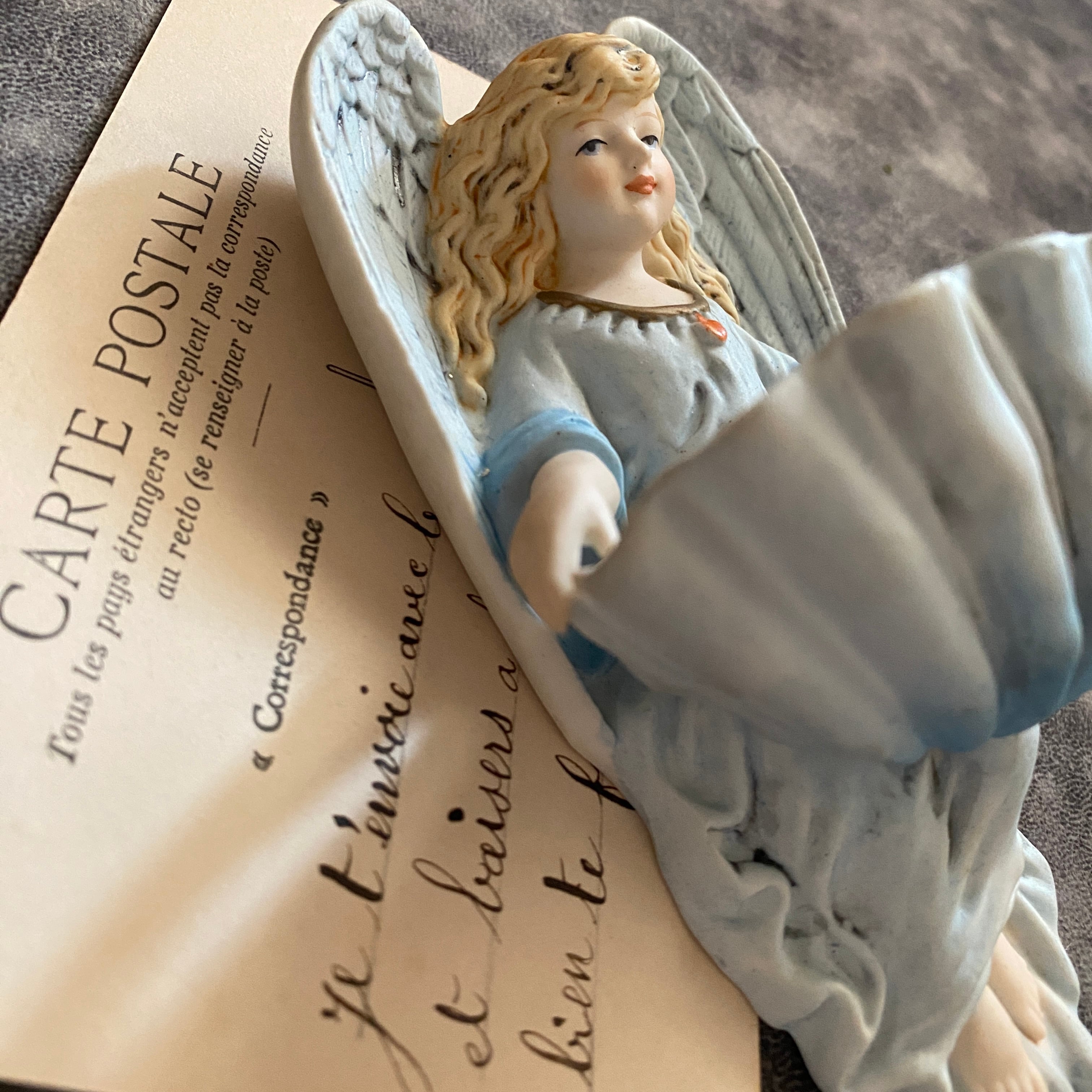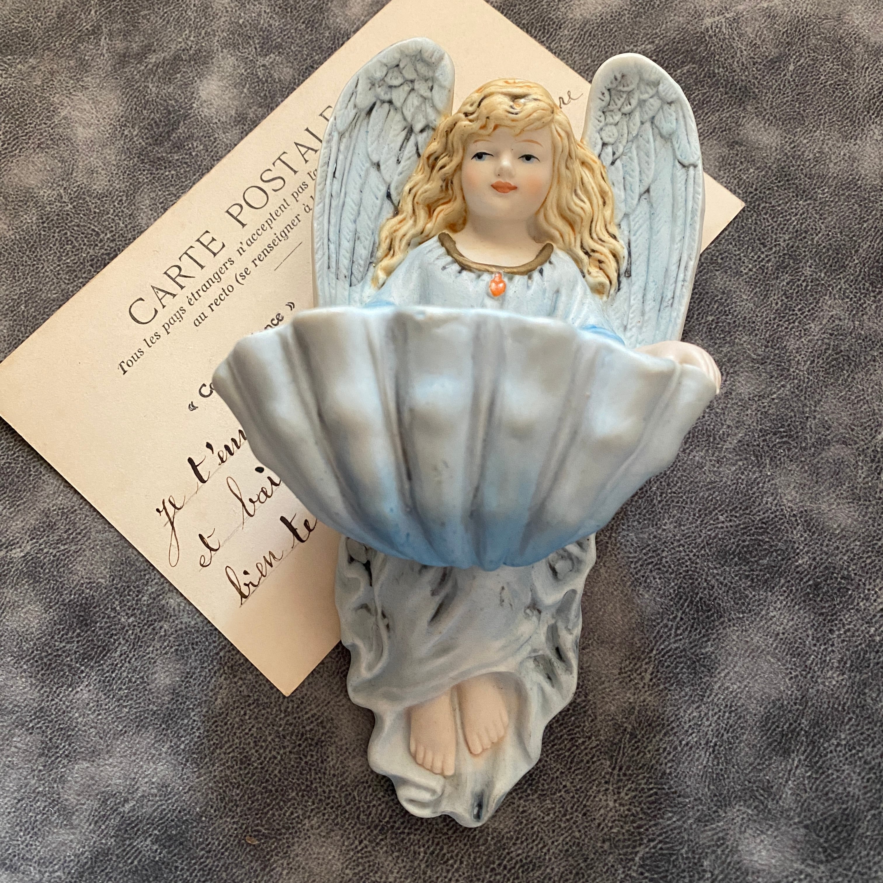 フランス窯アンティークエンジェル聖水盤【The Pale Blue Healing Angel】