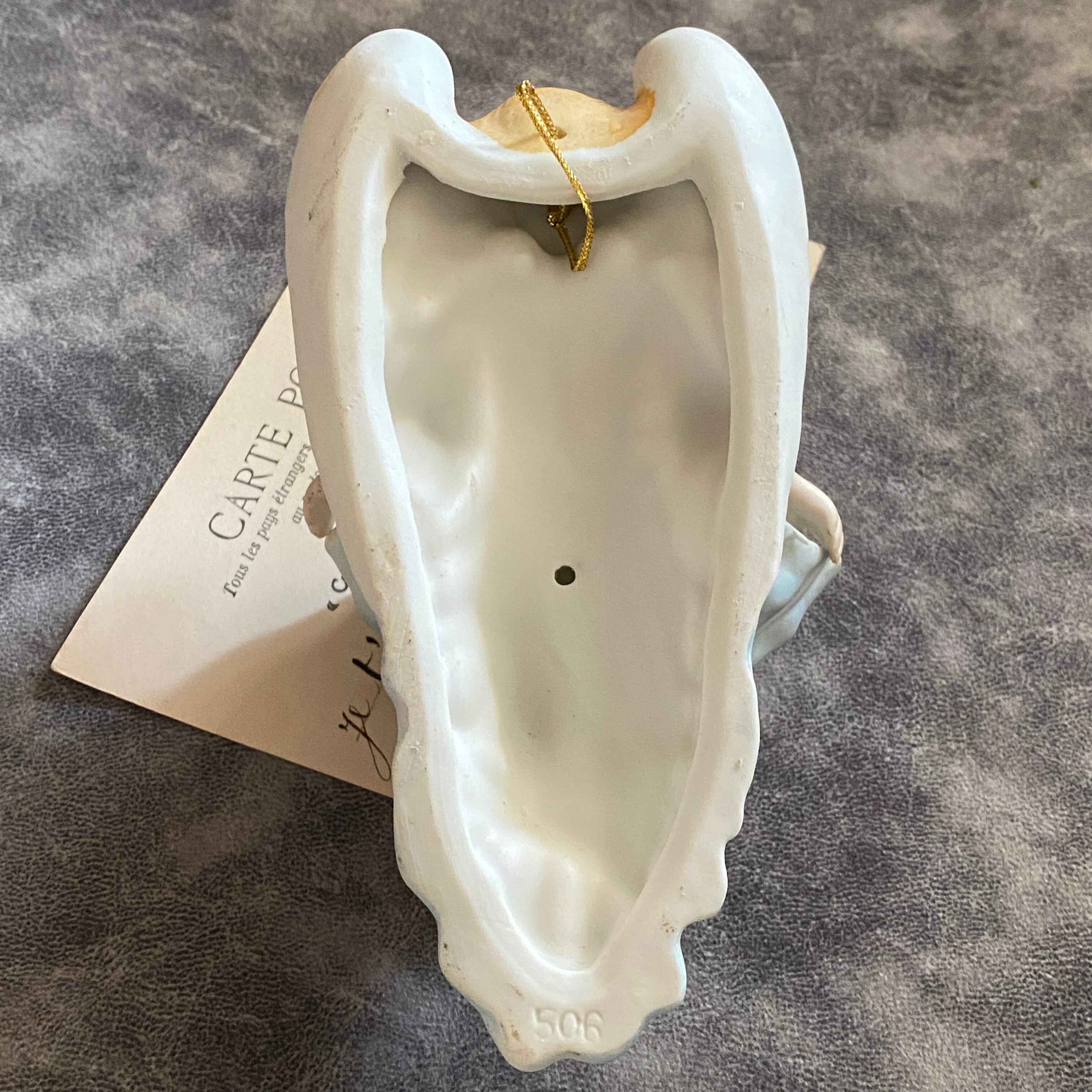 素焼き(ビスキュイ)特有のやわらかな白肌が、やさしい光をふんわり受けとめて“神聖な祈り”をそのまま形にしています。