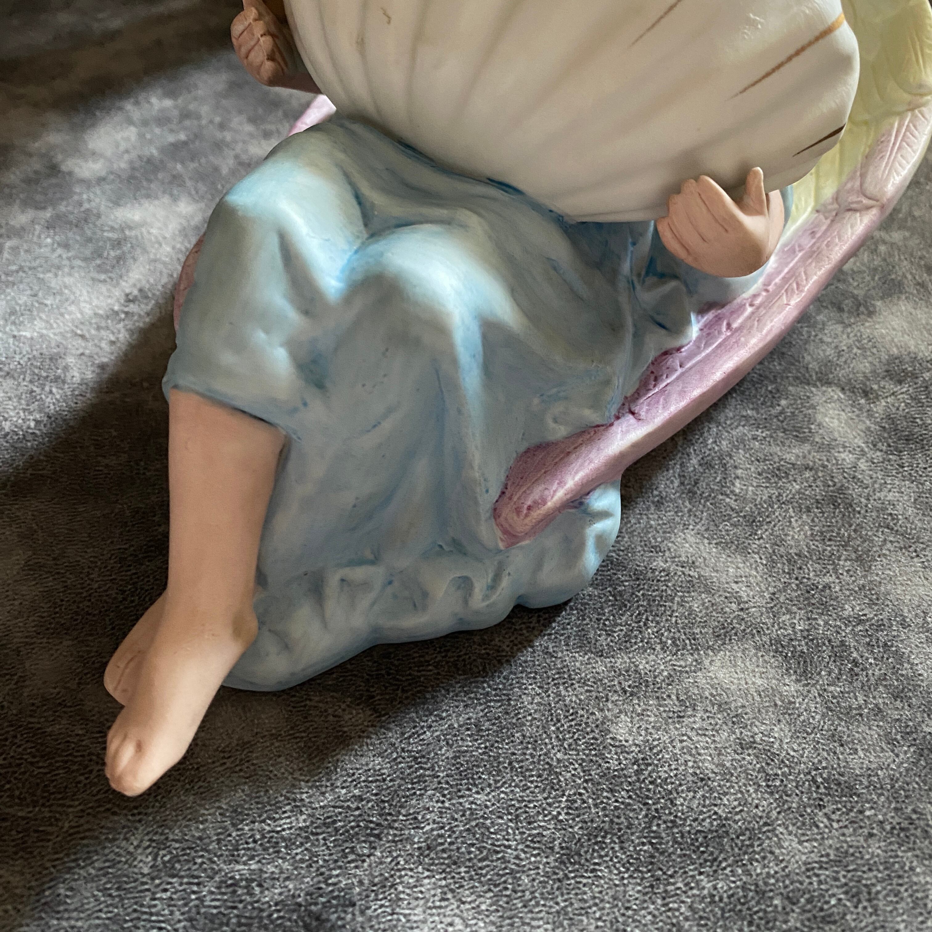 淡いパステルトーンで丁寧に塗られた翼と衣の色合いが、