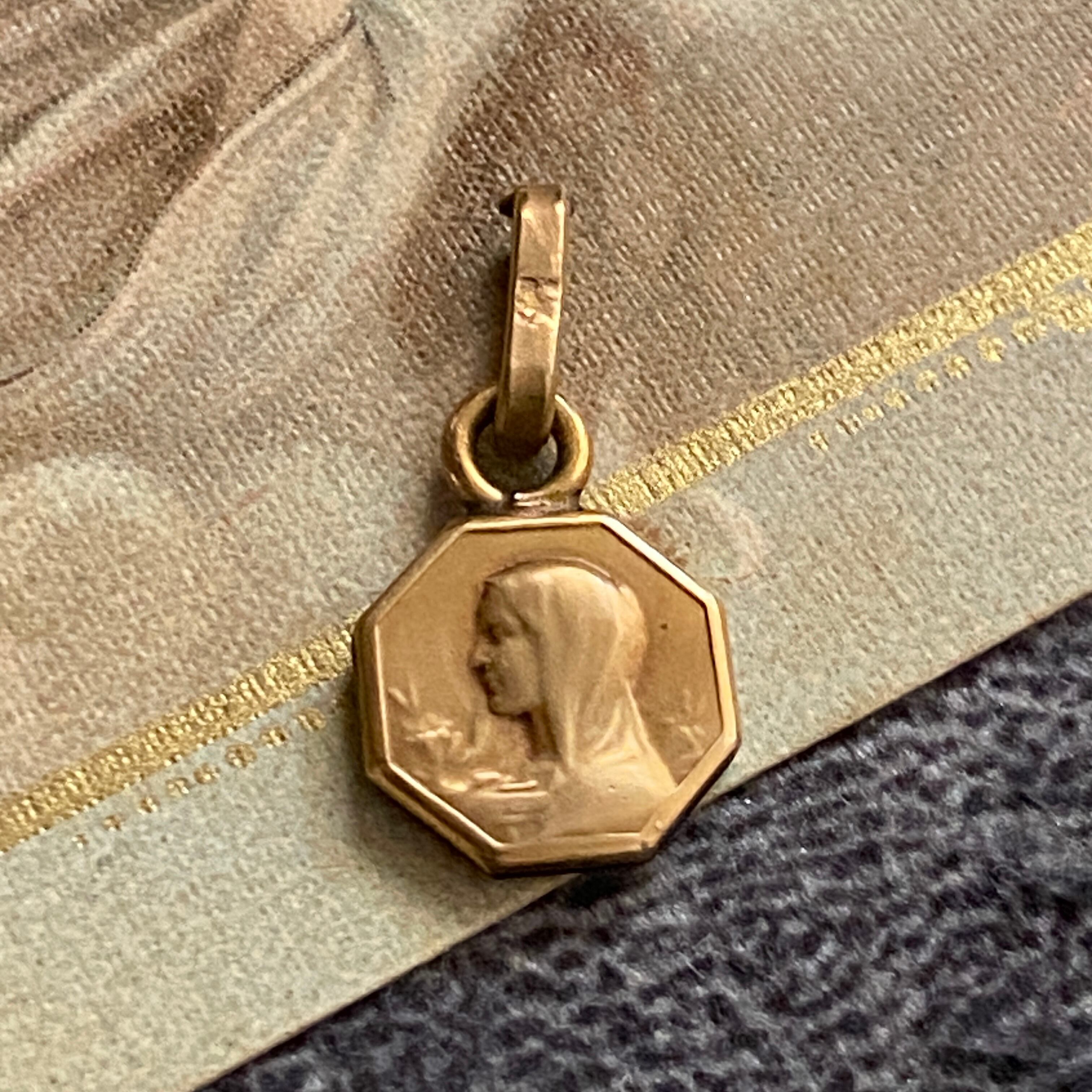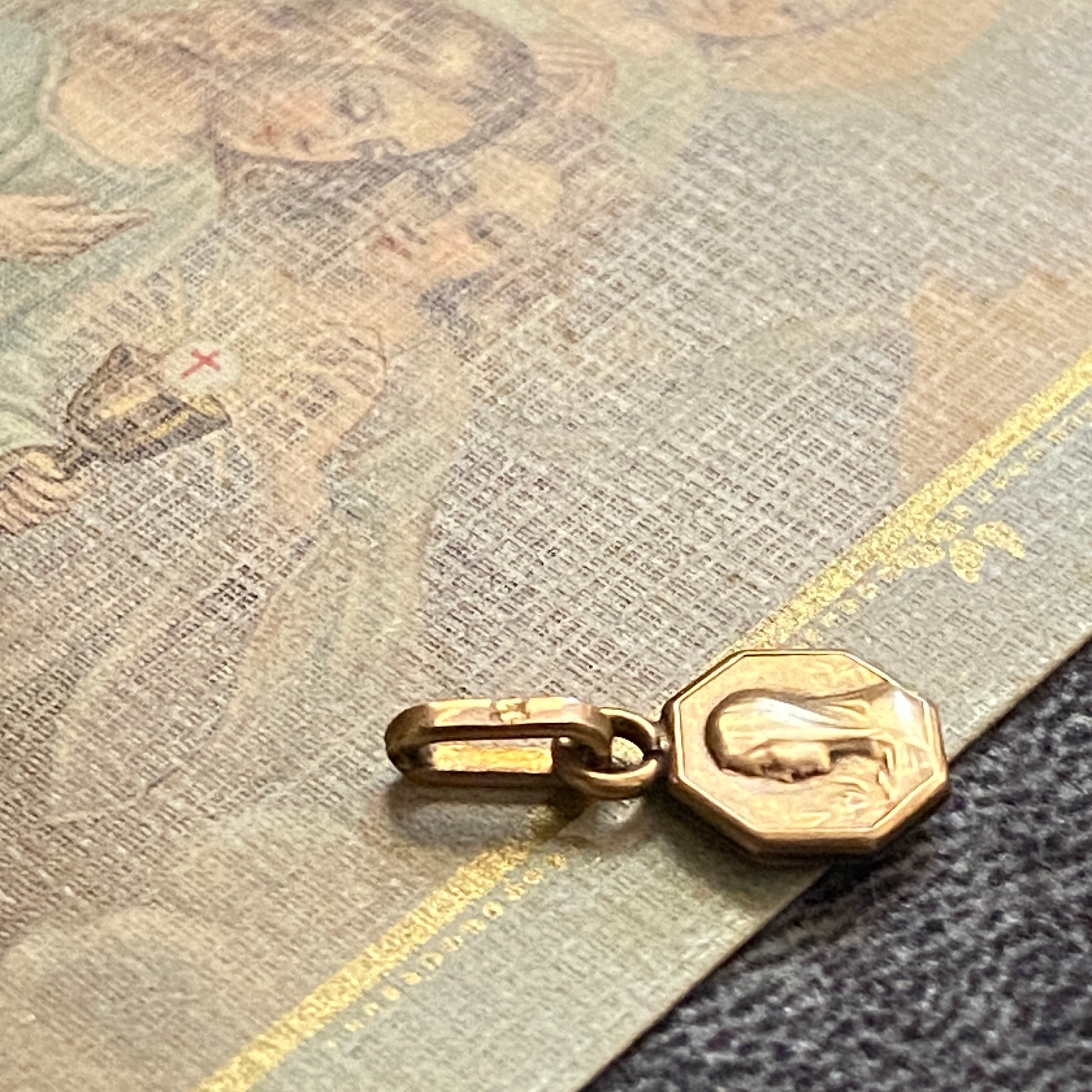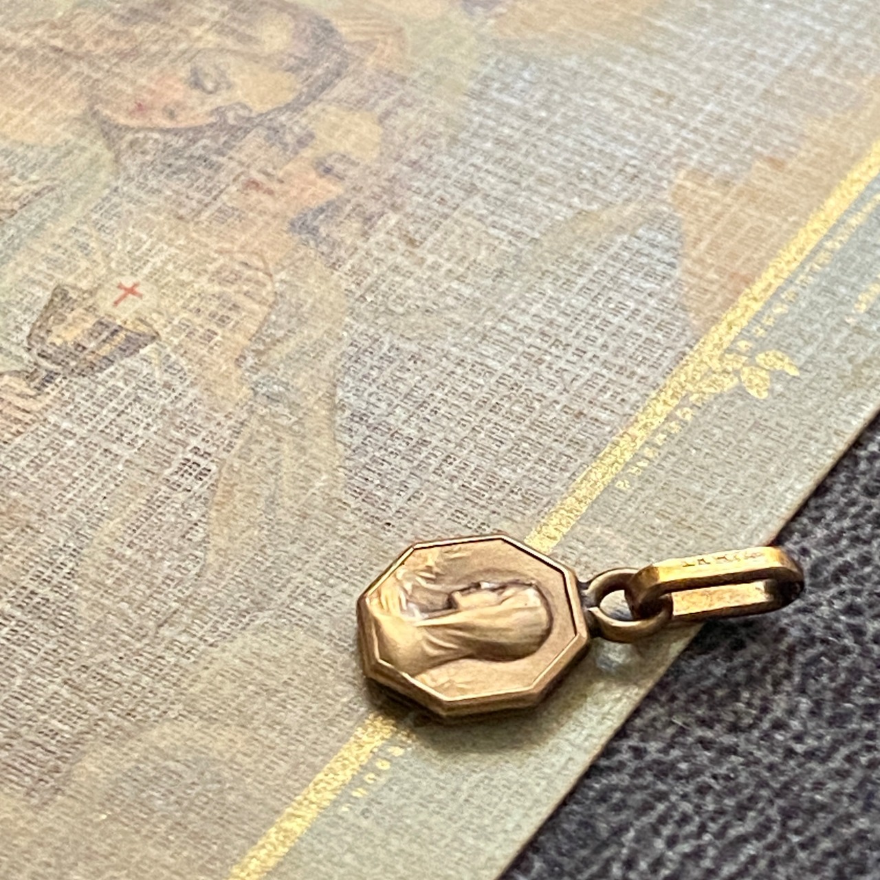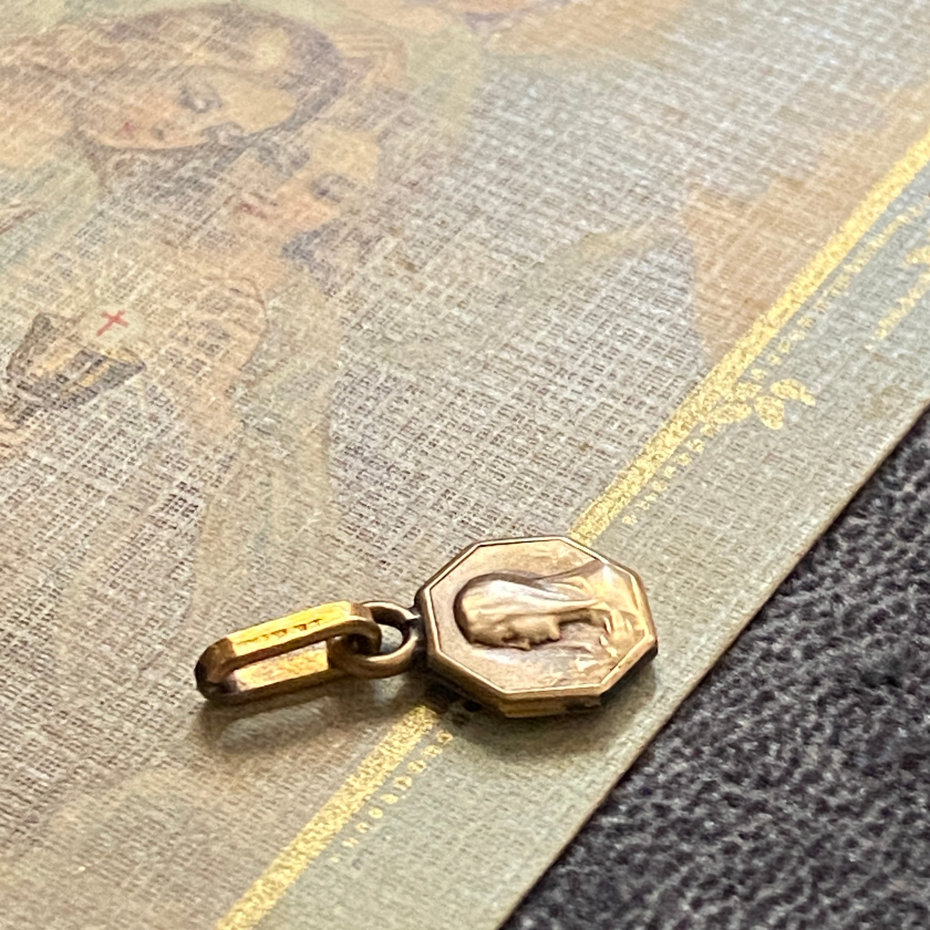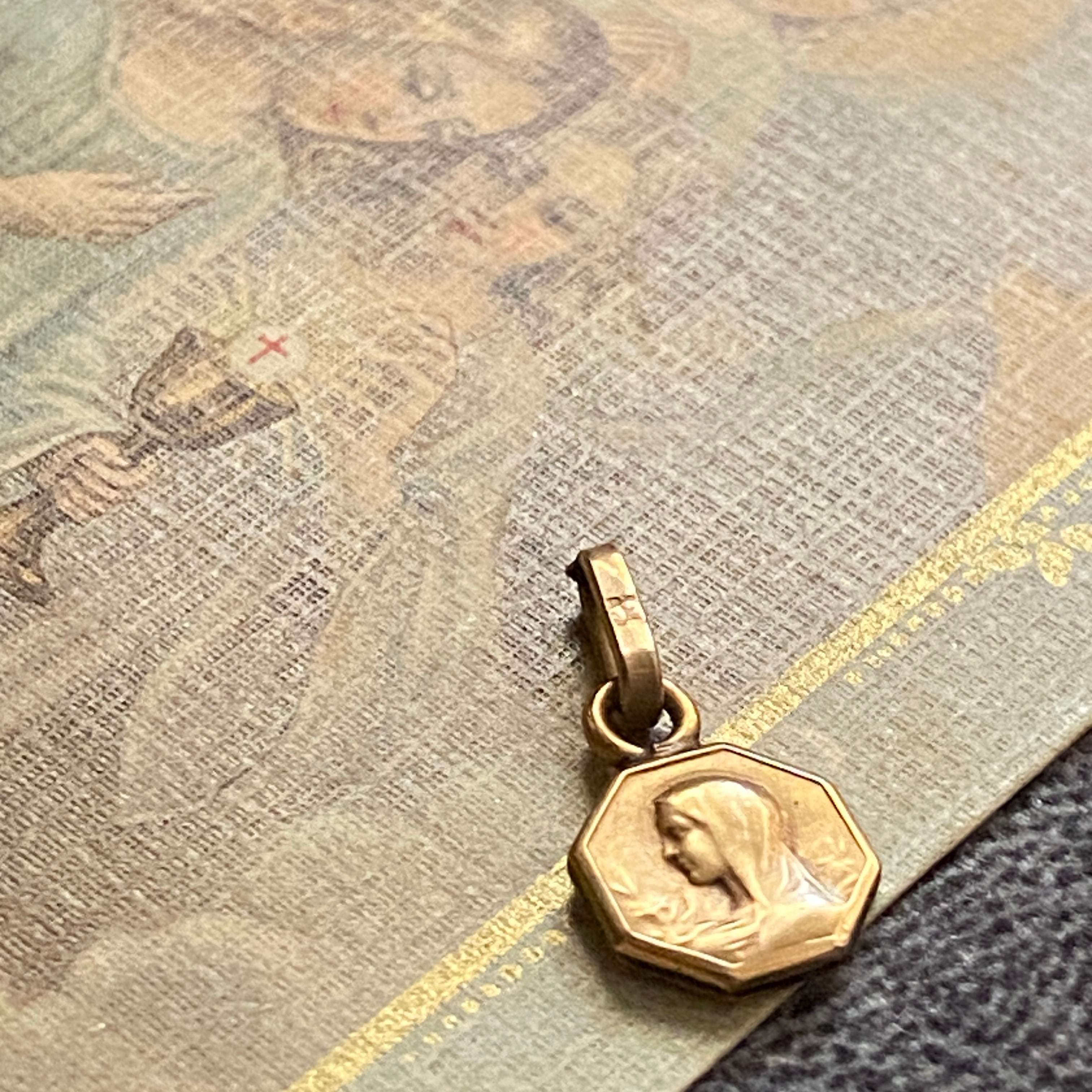 掌にすっと収まるほど小さな極小サイズのマリアさまメダイ。