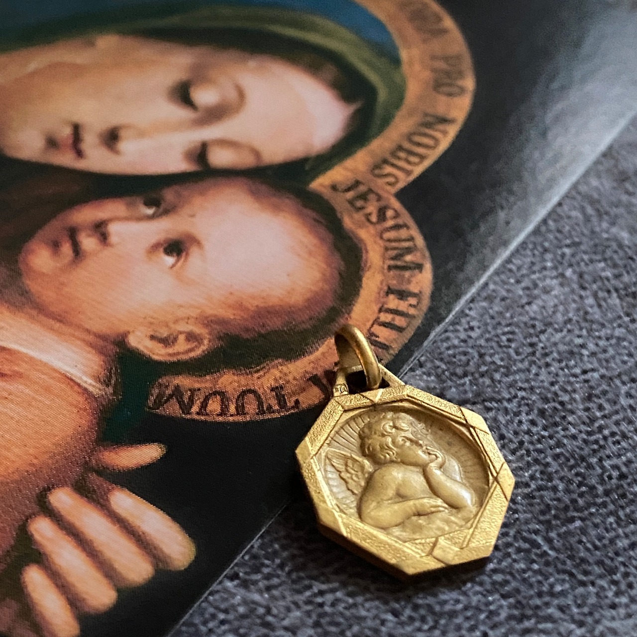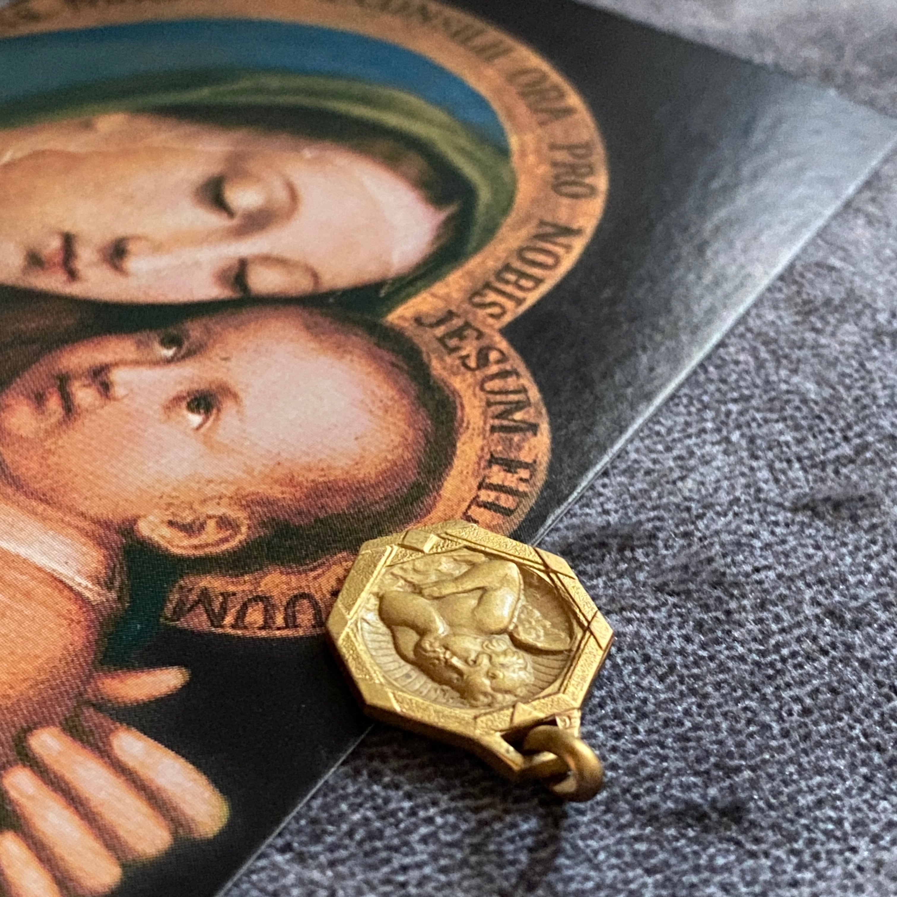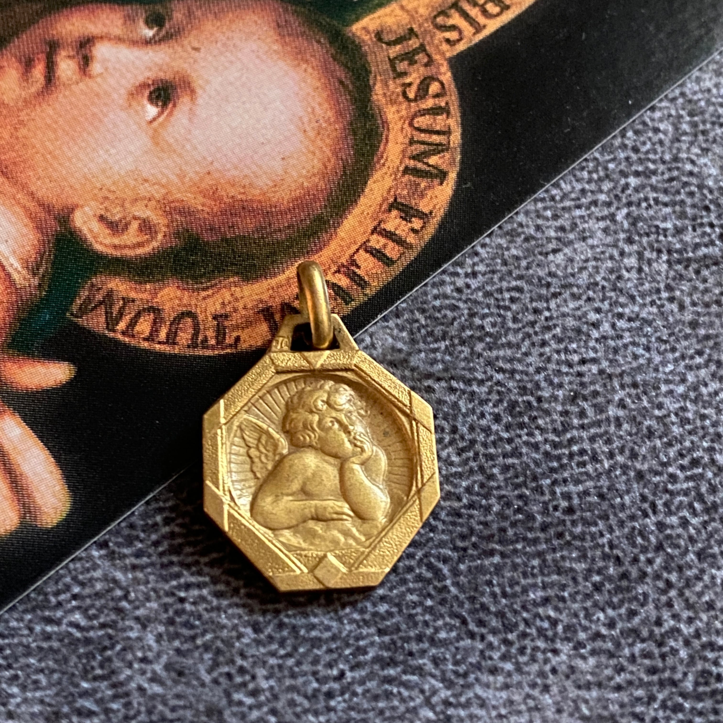 希少✴︎頬杖の天使 八角形アールデコフレームメダイ