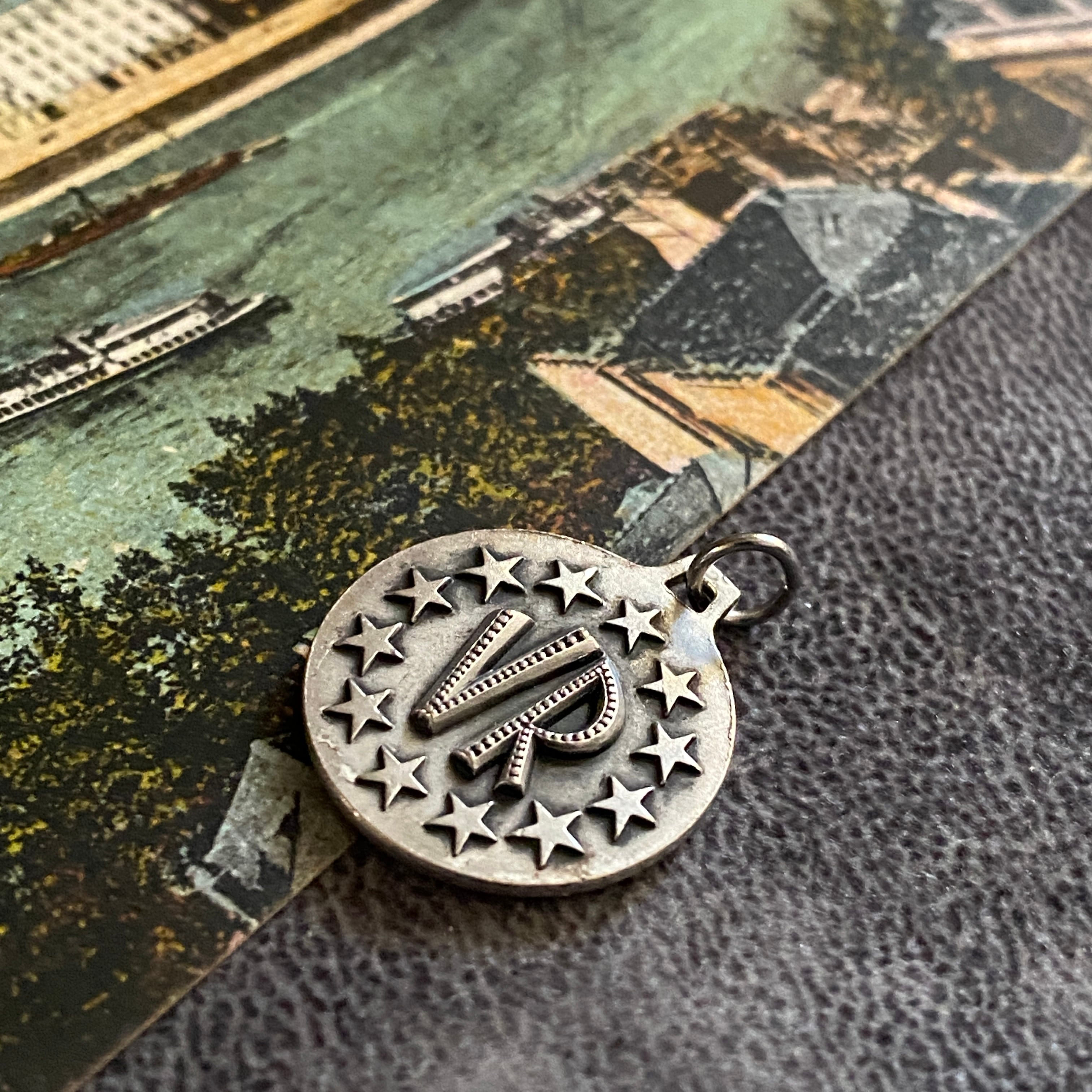 背面には、星に囲まれたマリアのモノグラムが配されています。