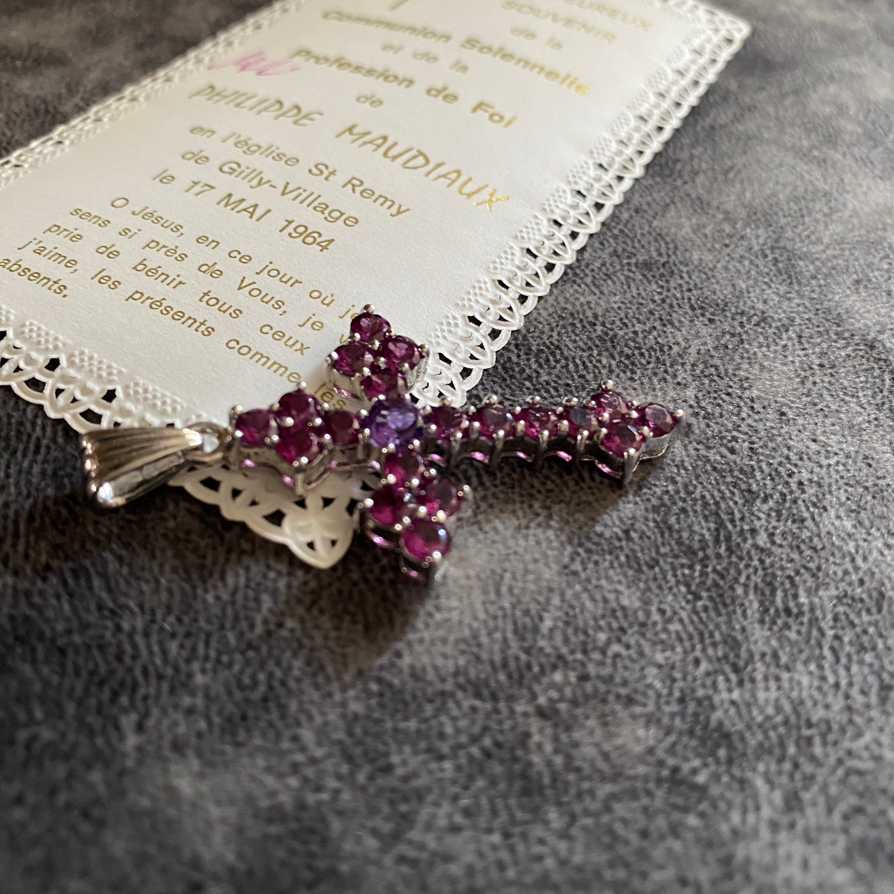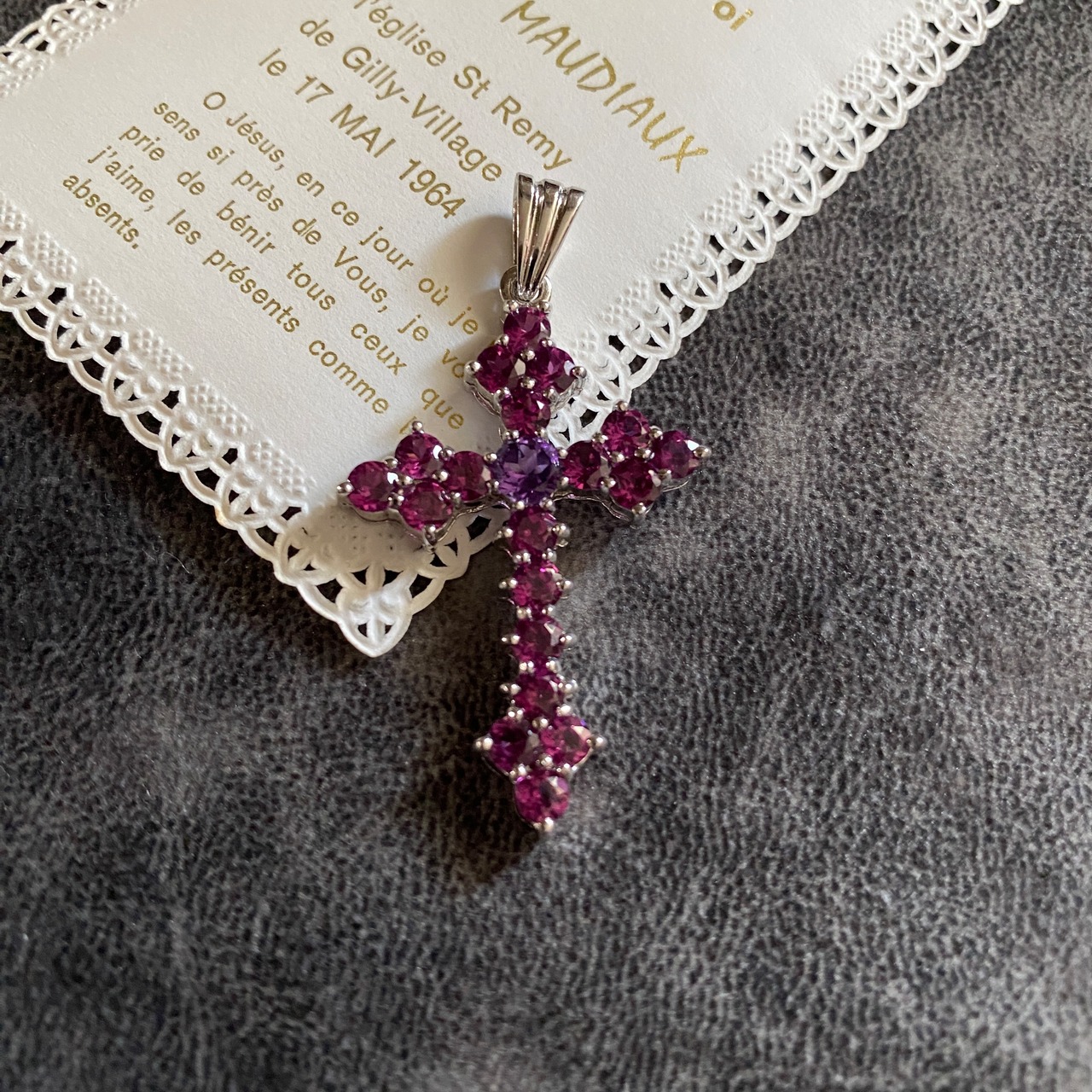 ピンクトルマリンとアメジストのヴィンテージクロス。