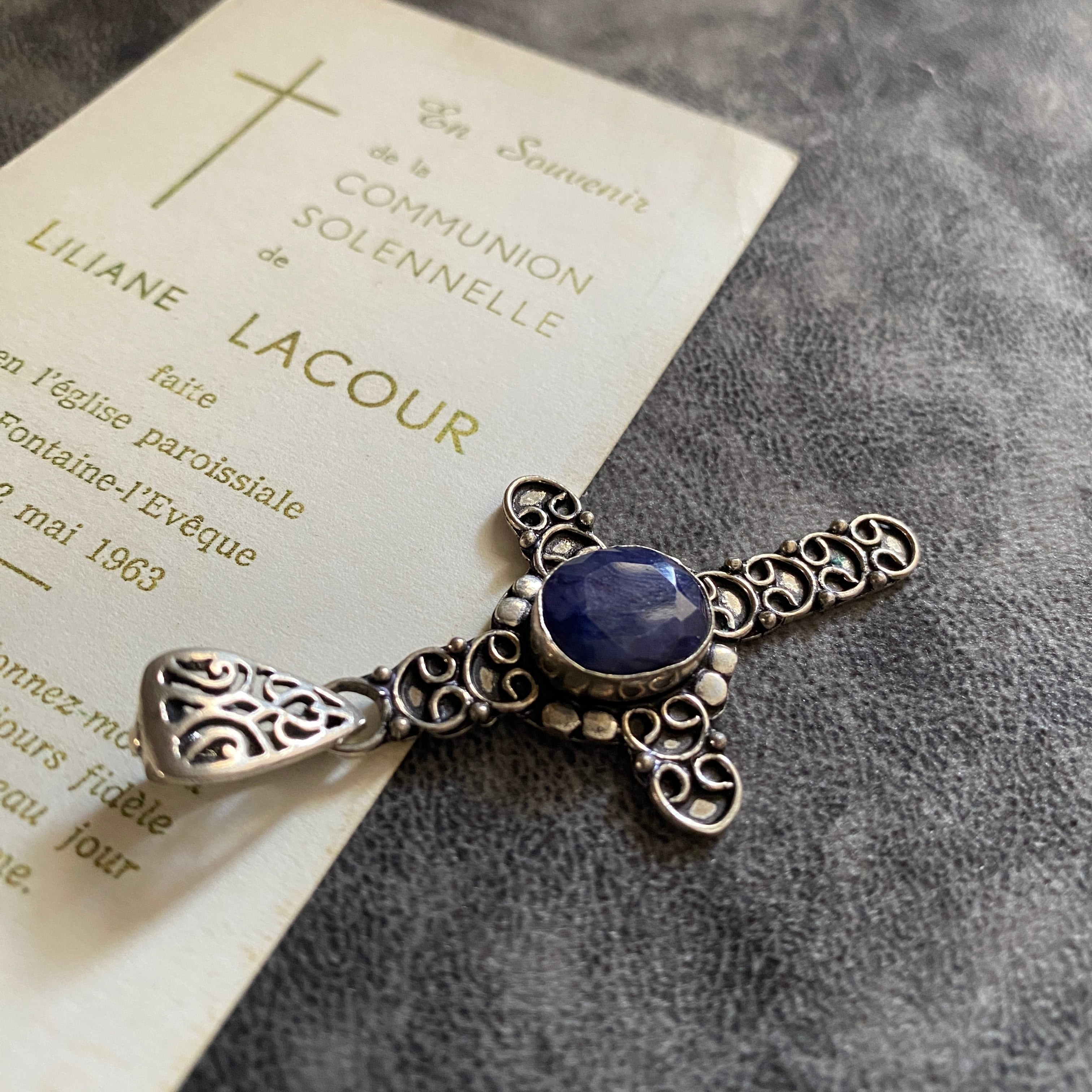 ブルーサファイアのヴィンテージクロス。