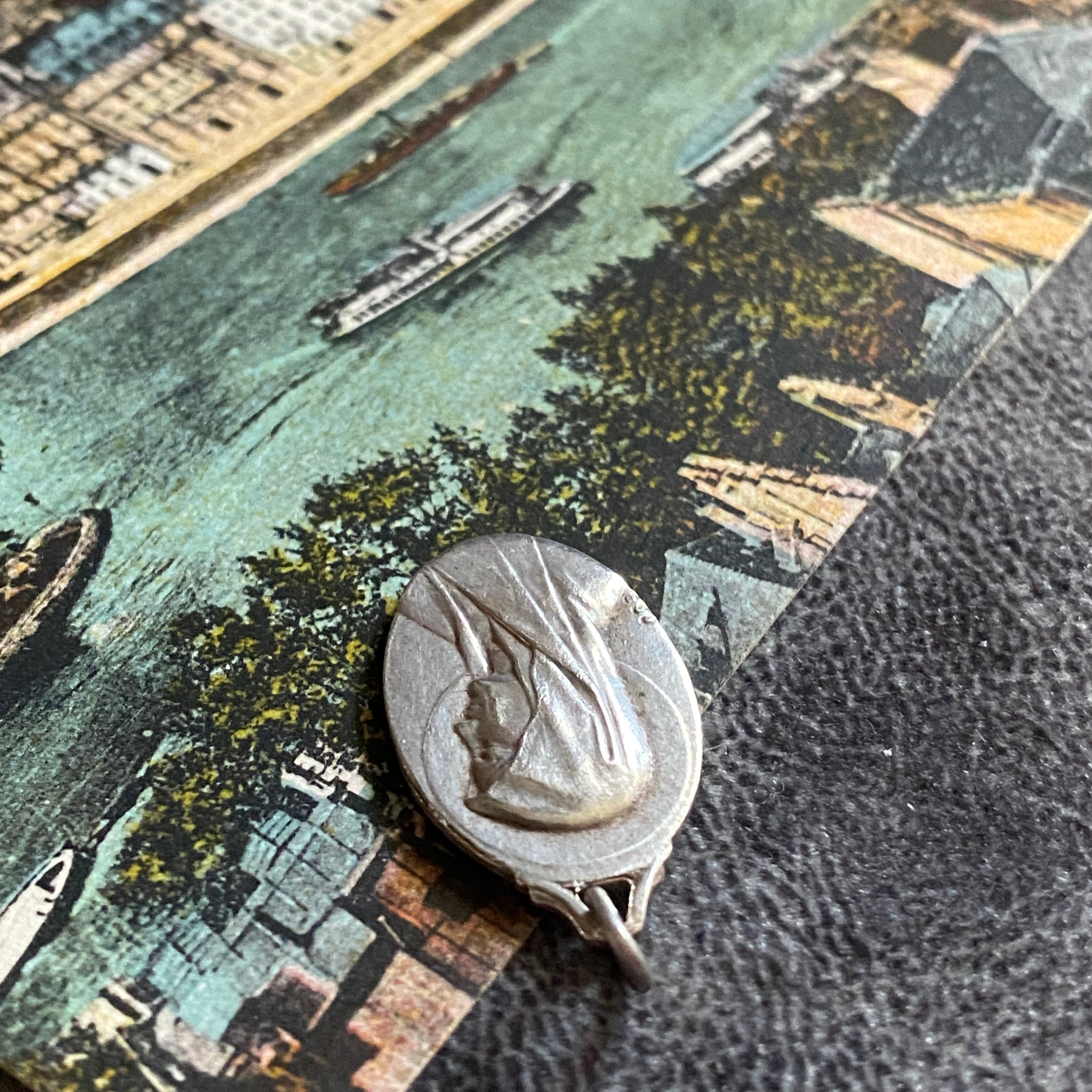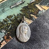 正面を向くメダイとは異なり、視線を落とし、内へと誘うような表情が印象的な一枚です。