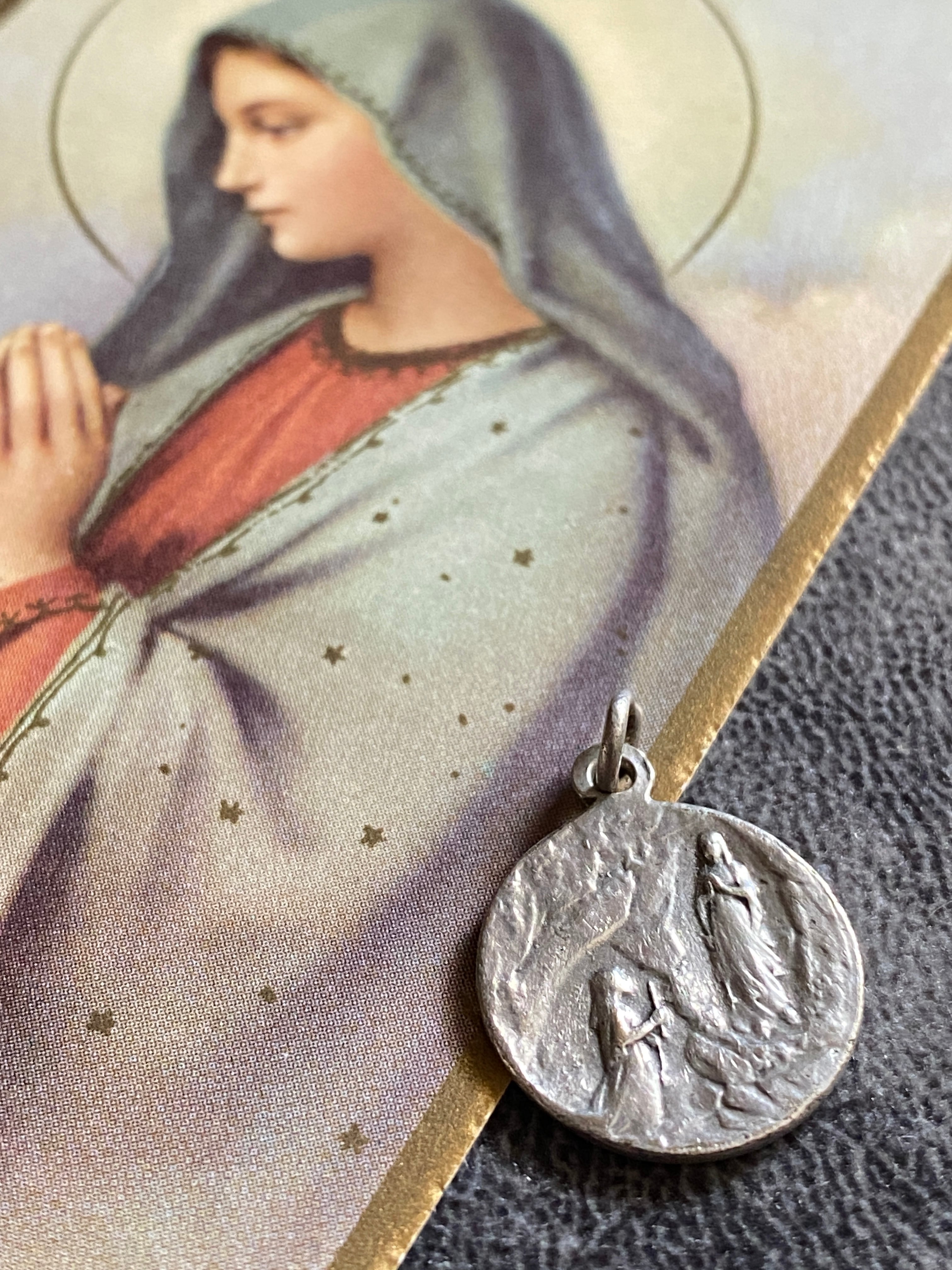 背面には、ルルドの御出現の情景。