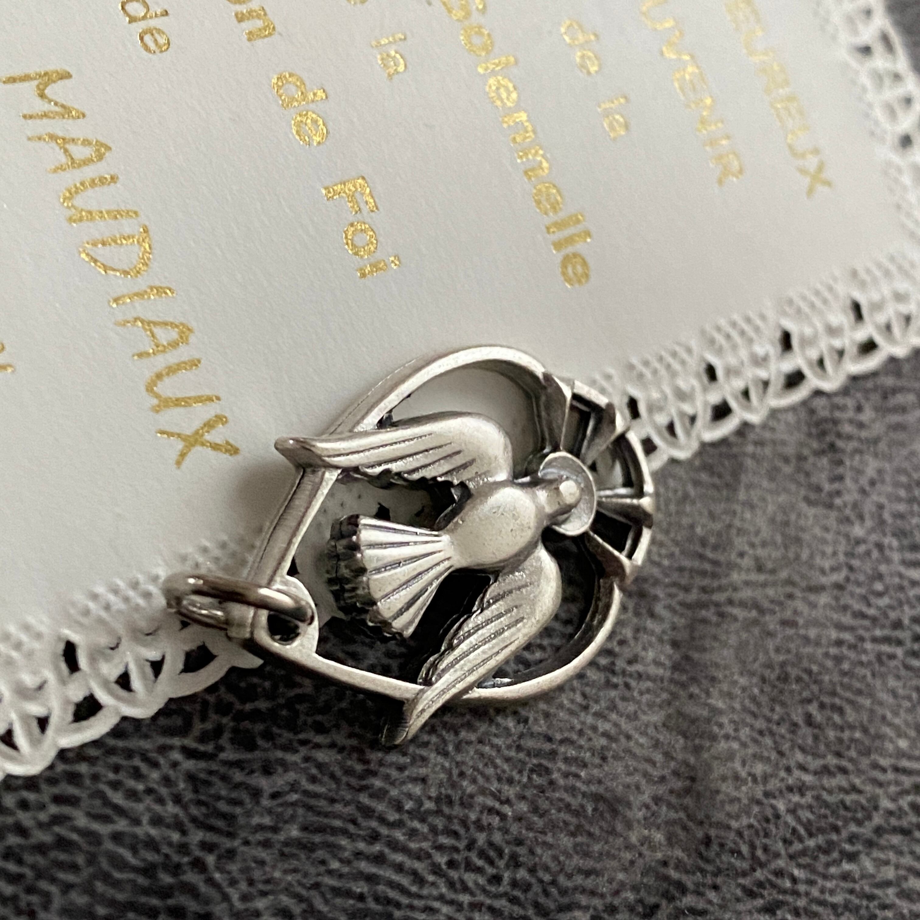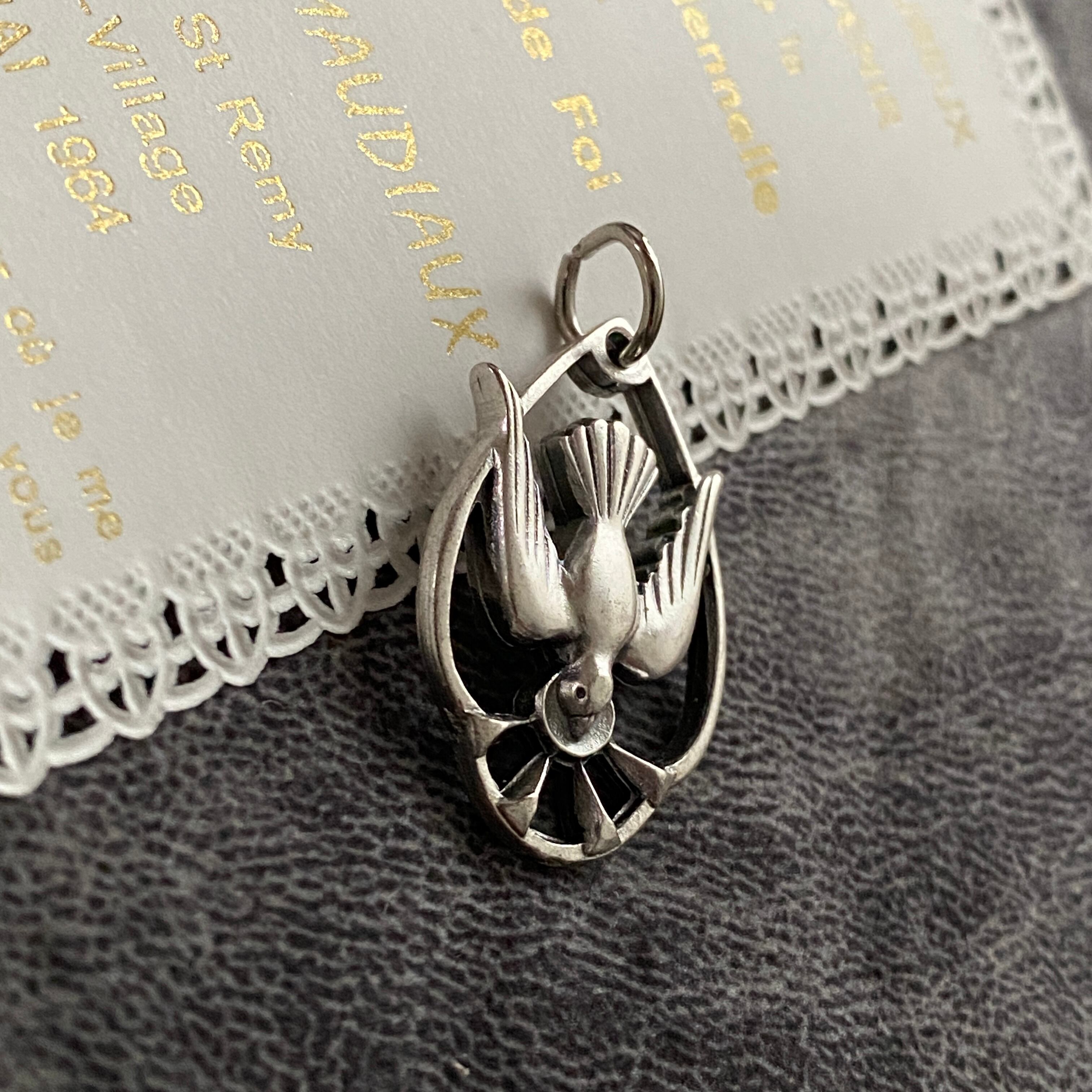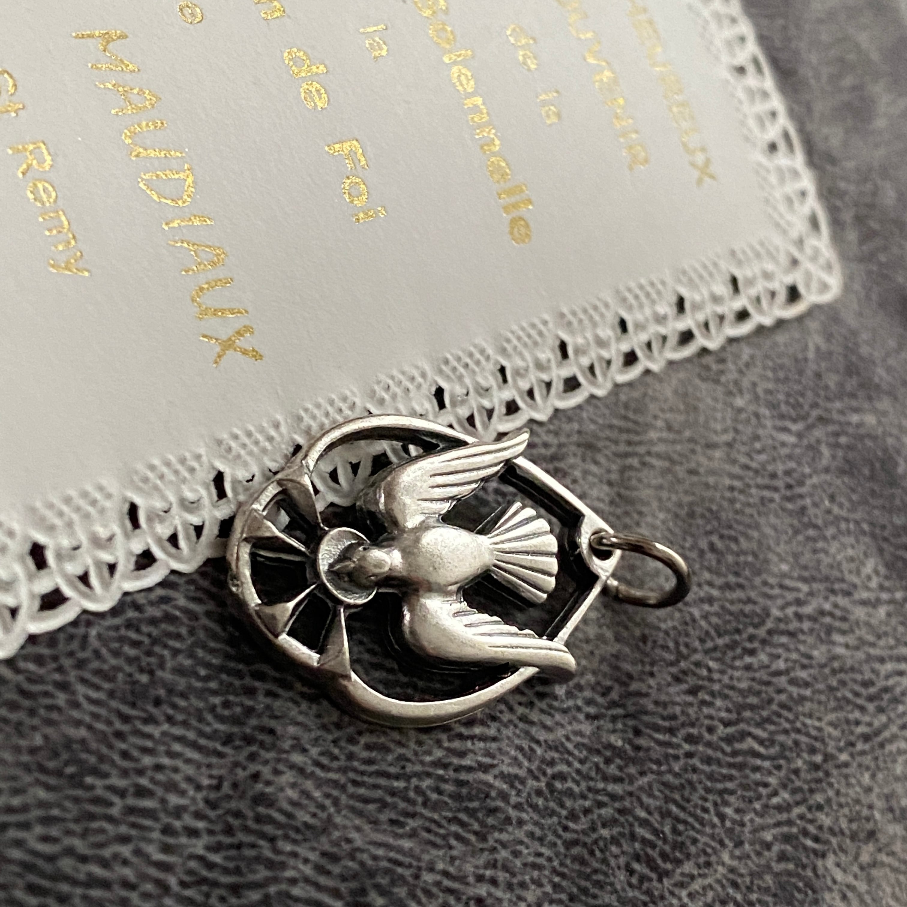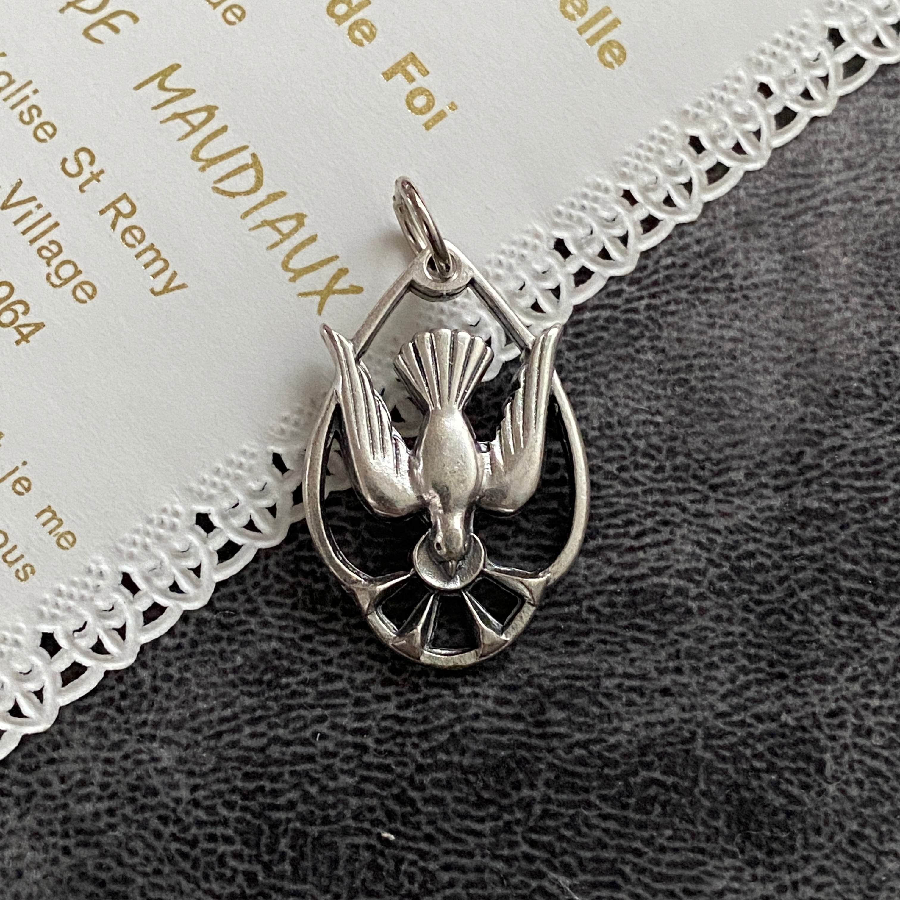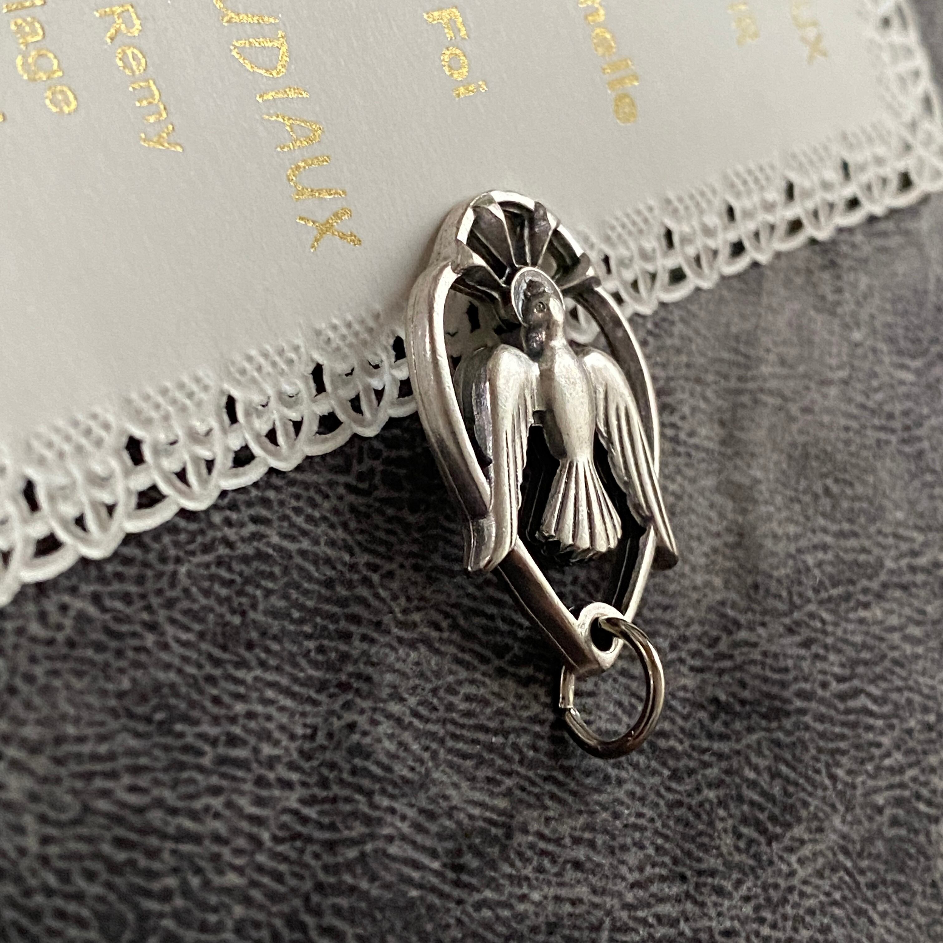 透かし細工が美しい聖霊が主役の希少なデザインのメダイ。