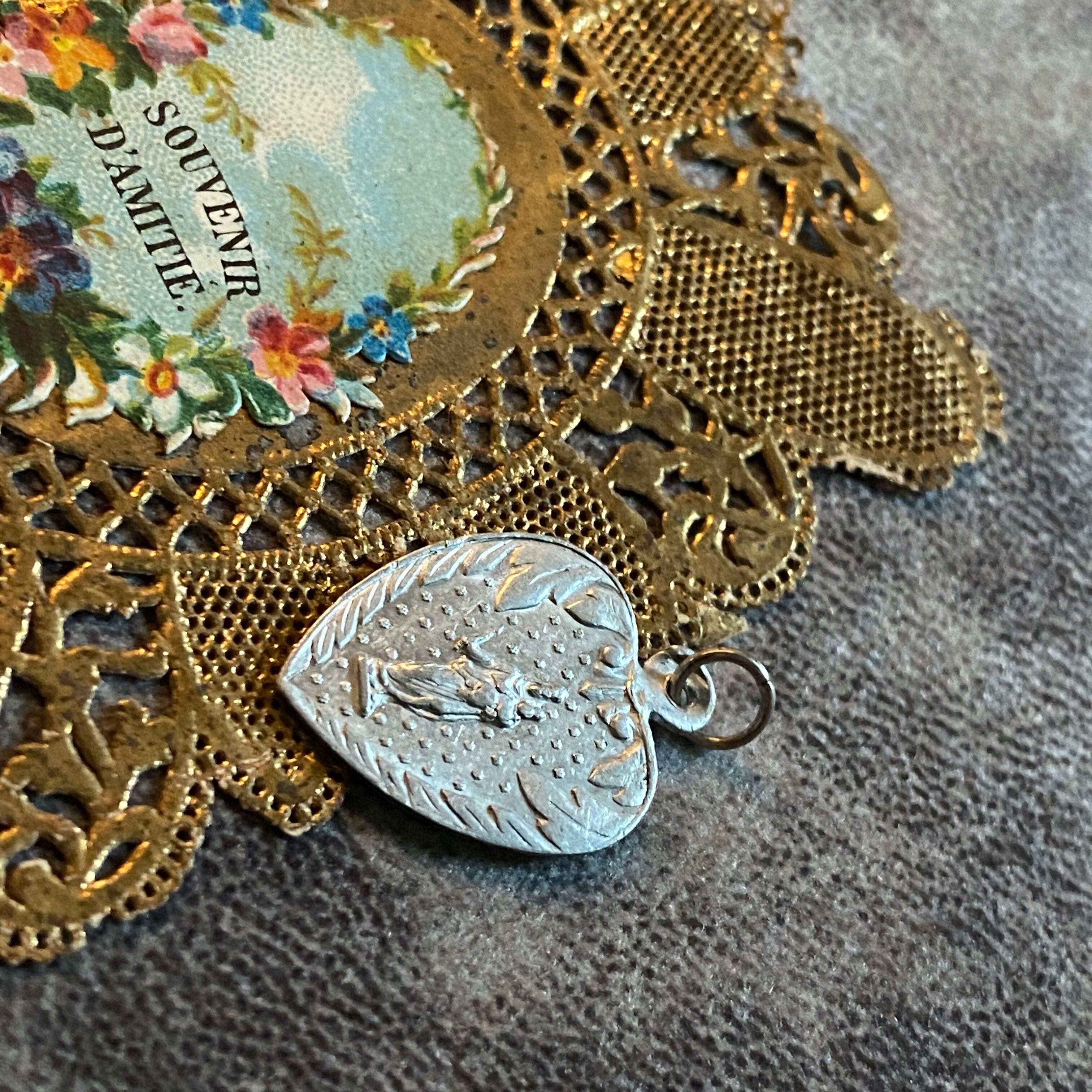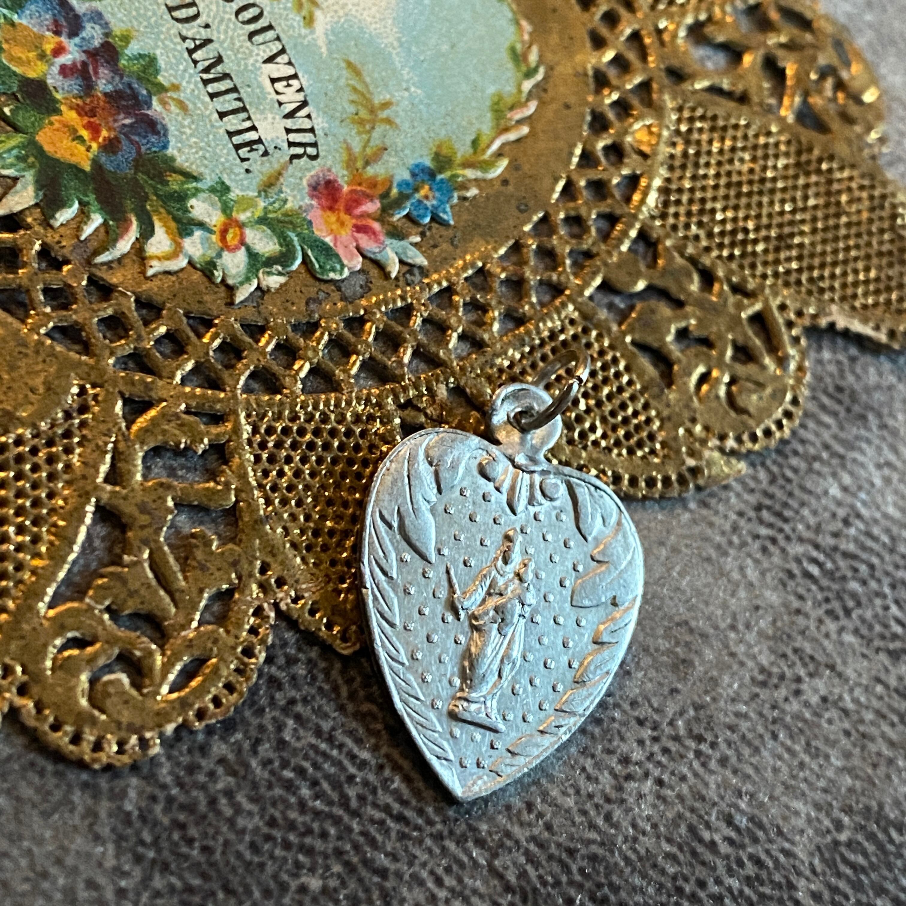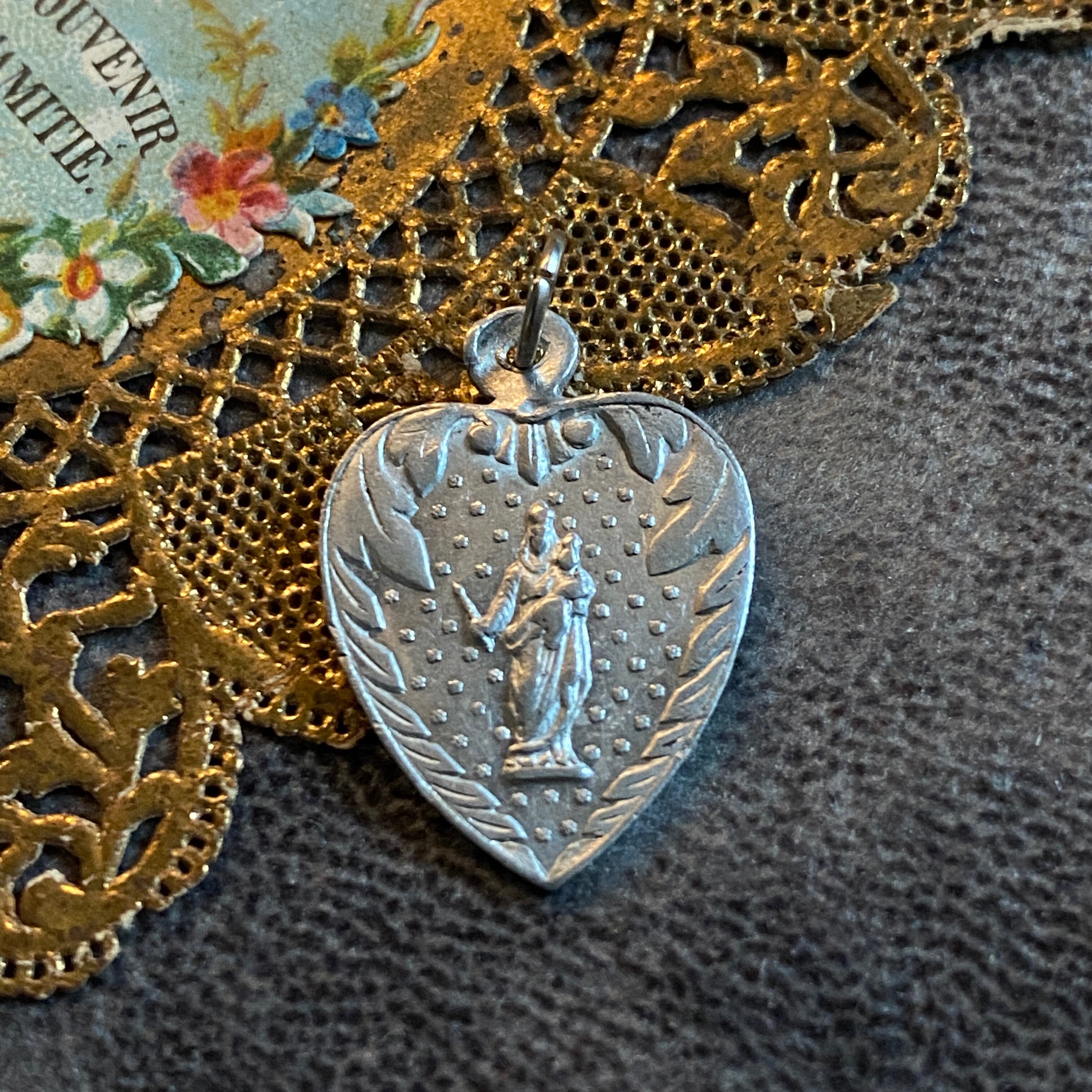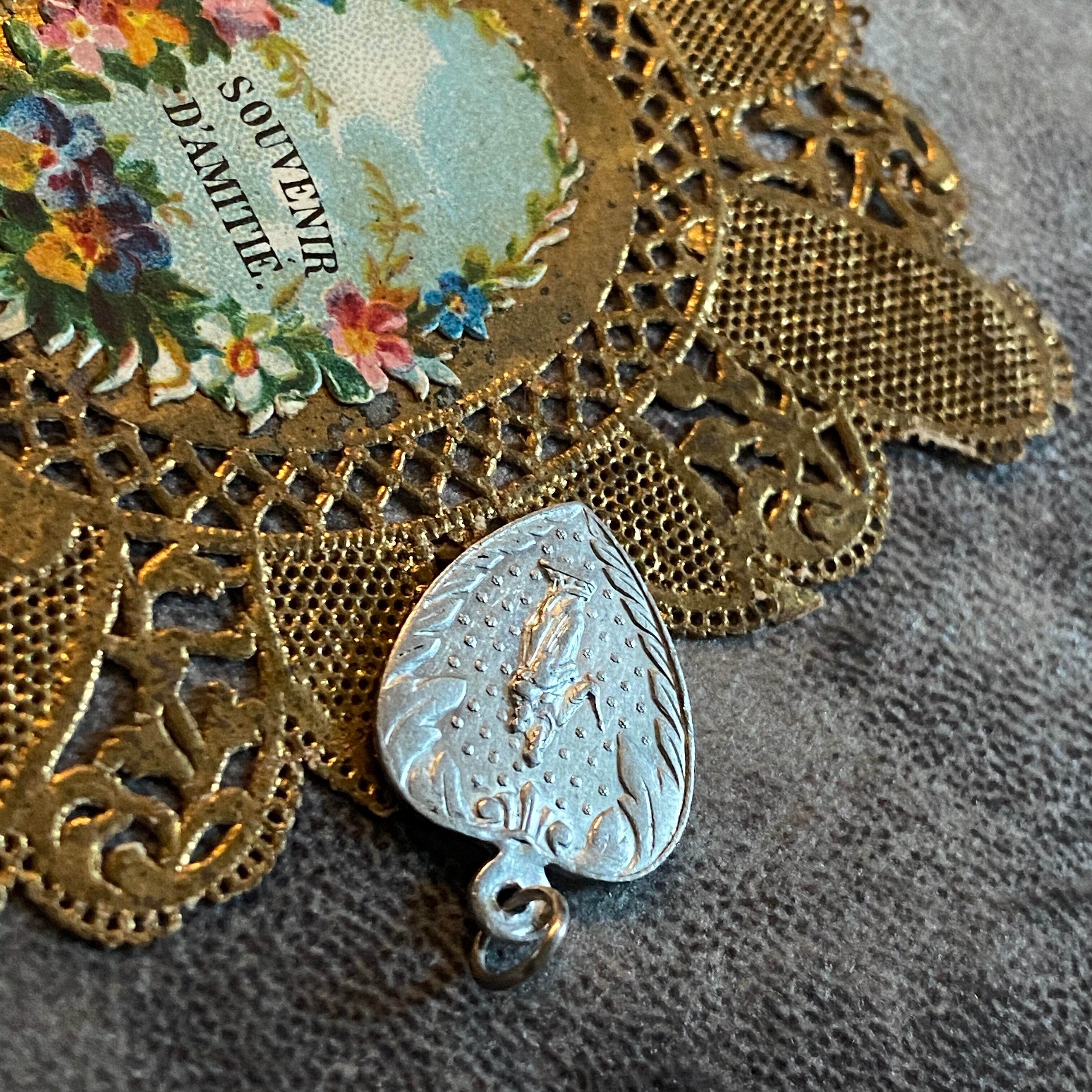 このボタニカルデザインといい、瑞々しいエネルギーを放つところといい、薄いメダイなので、ルルドのスーヴェニールを思い出す方もいらっしゃるかもしれませんが、こちらはアルミニウム製です。
