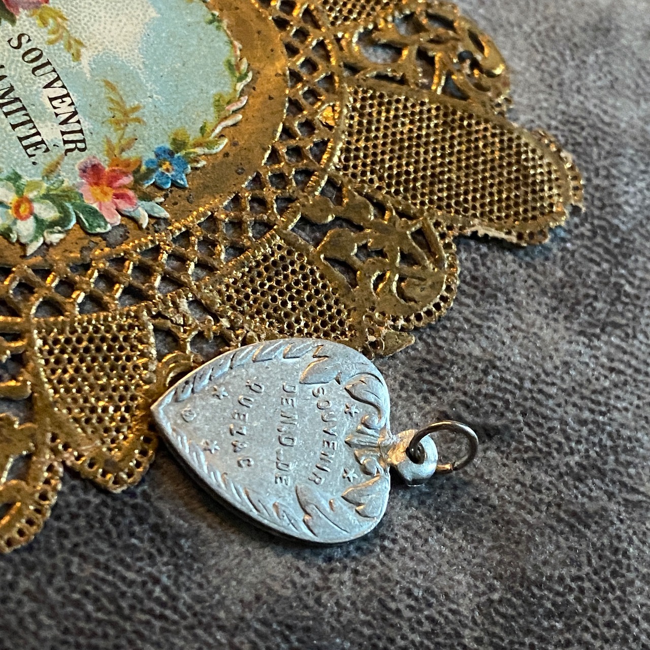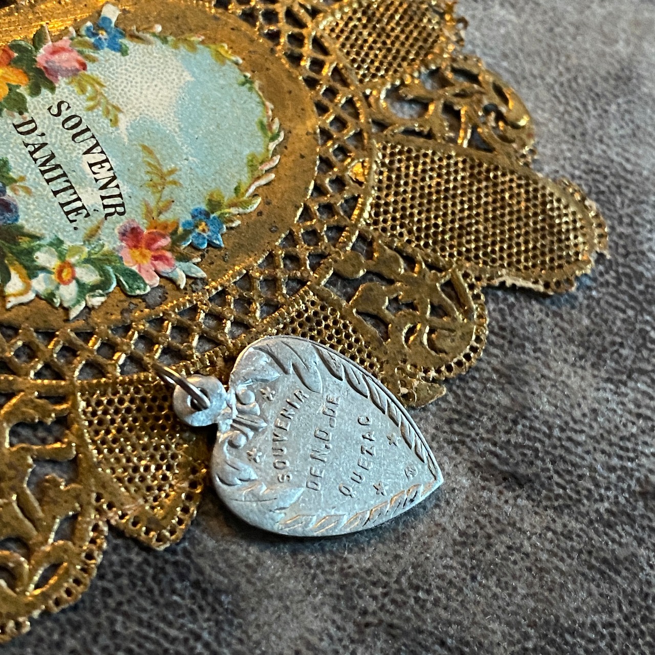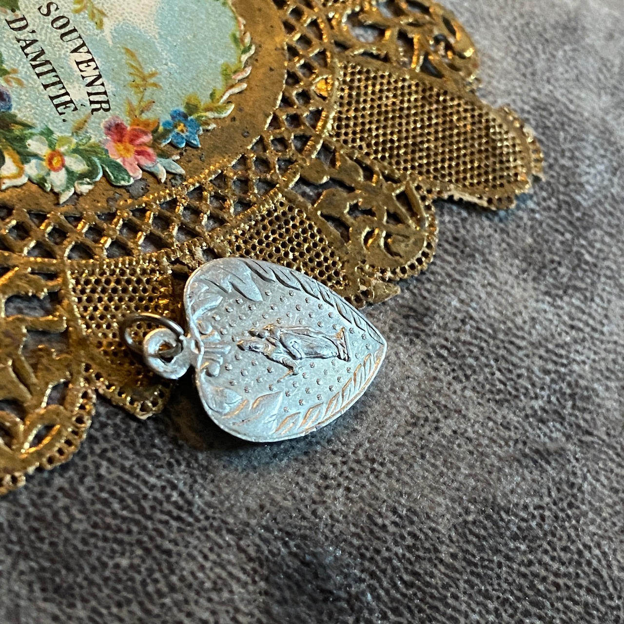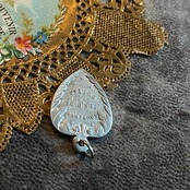 このボタニカルデザインといい、瑞々しいエネルギーを放つところといい、薄いメダイなので、ルルドのスーヴェニールを思い出す方もいらっしゃるかもしれませんが、こちらはアルミニウム製です。
