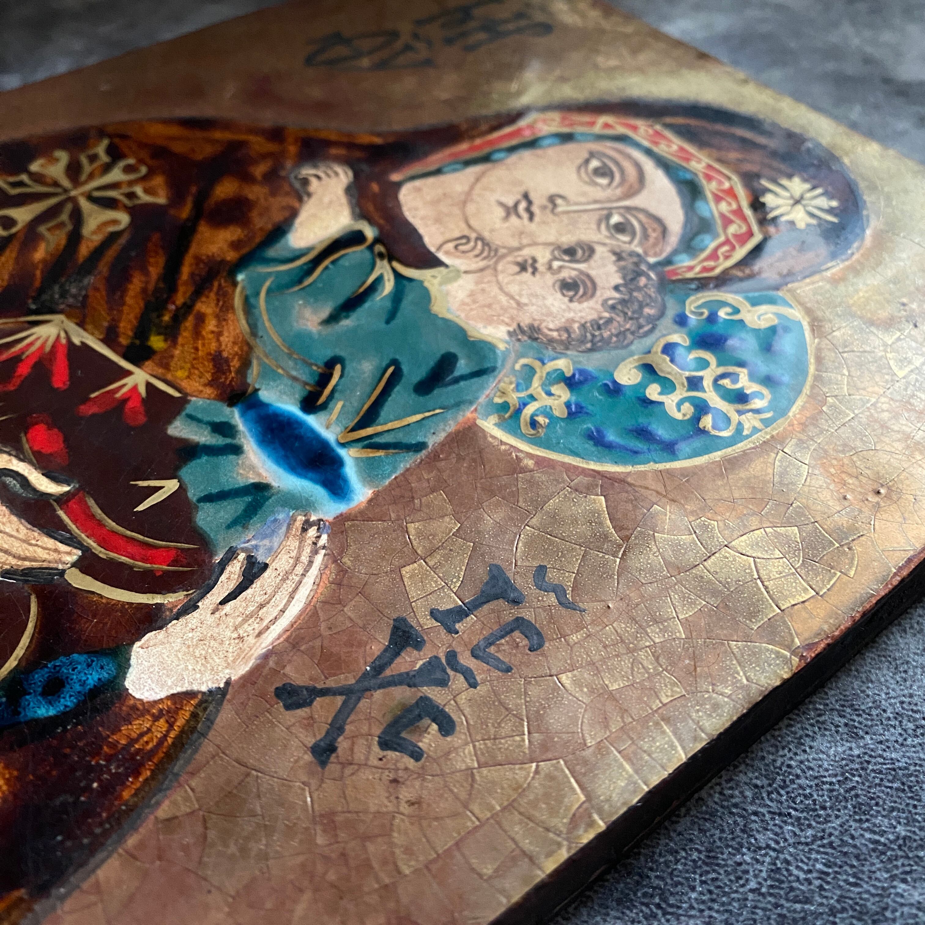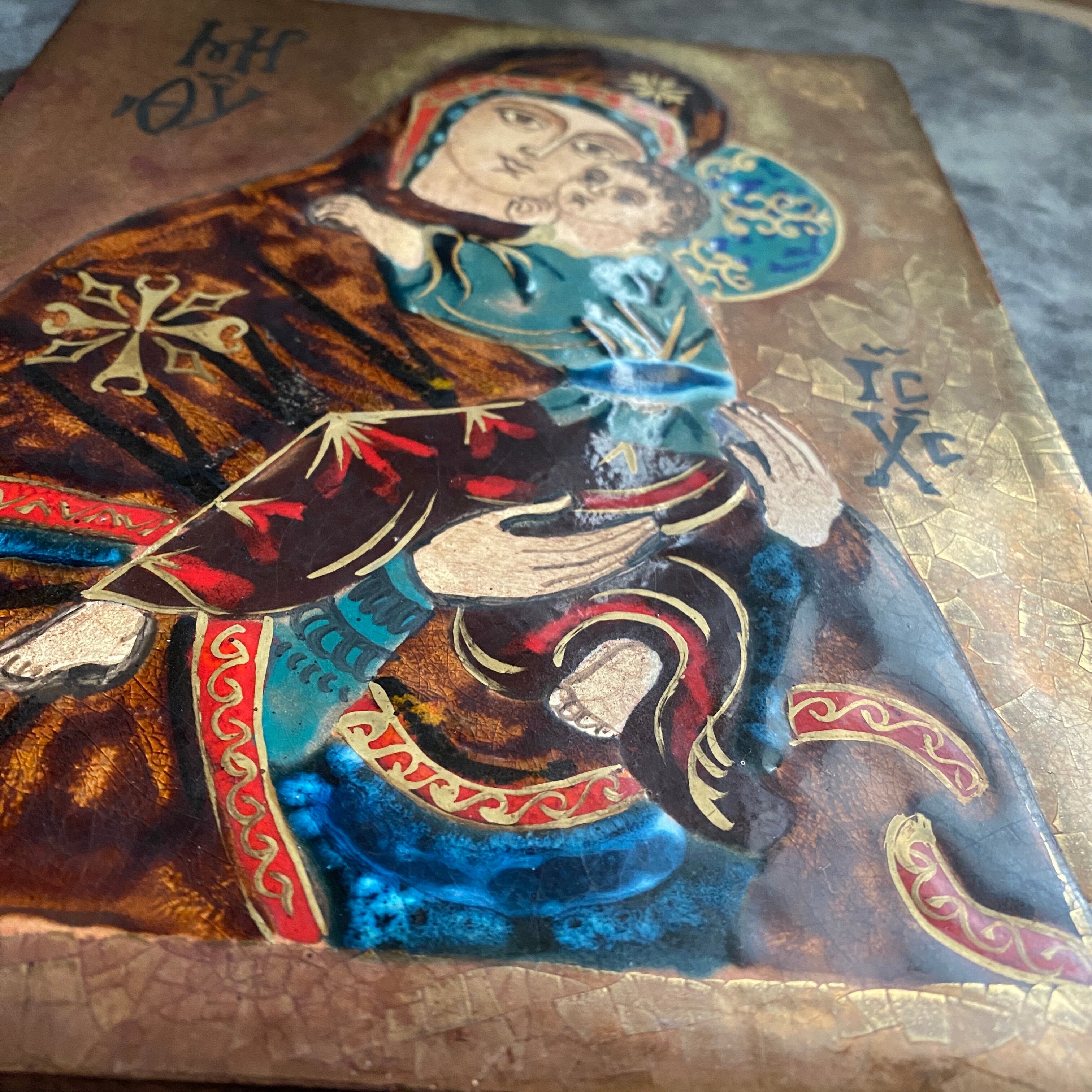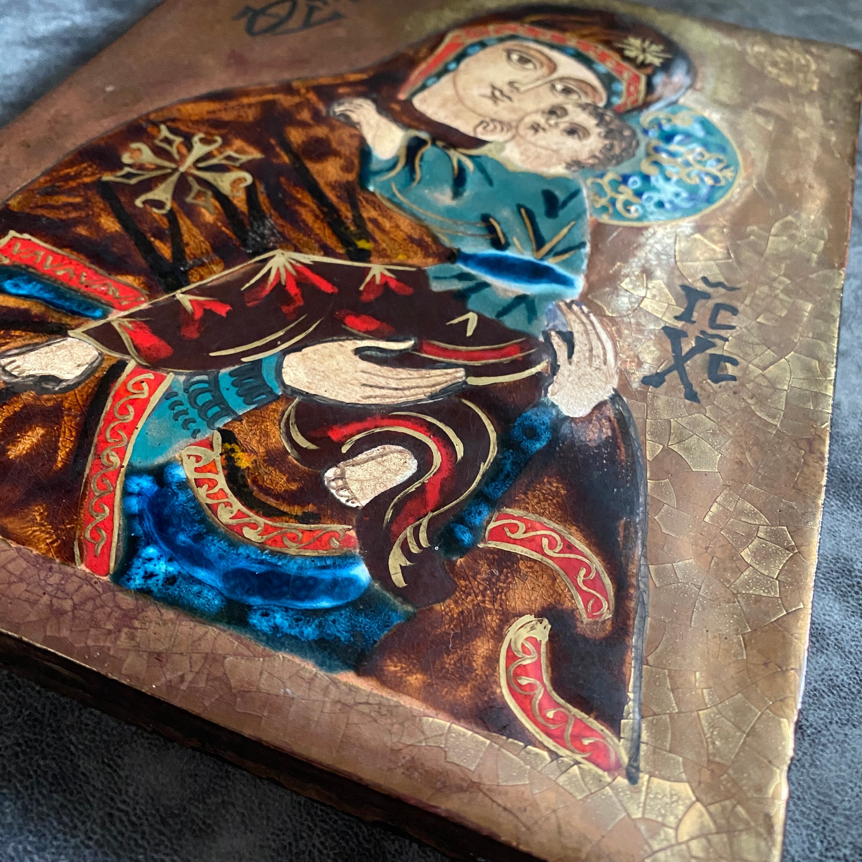 ビザンチン美術の聖母子画のエナメル焼きの希少なイコン。