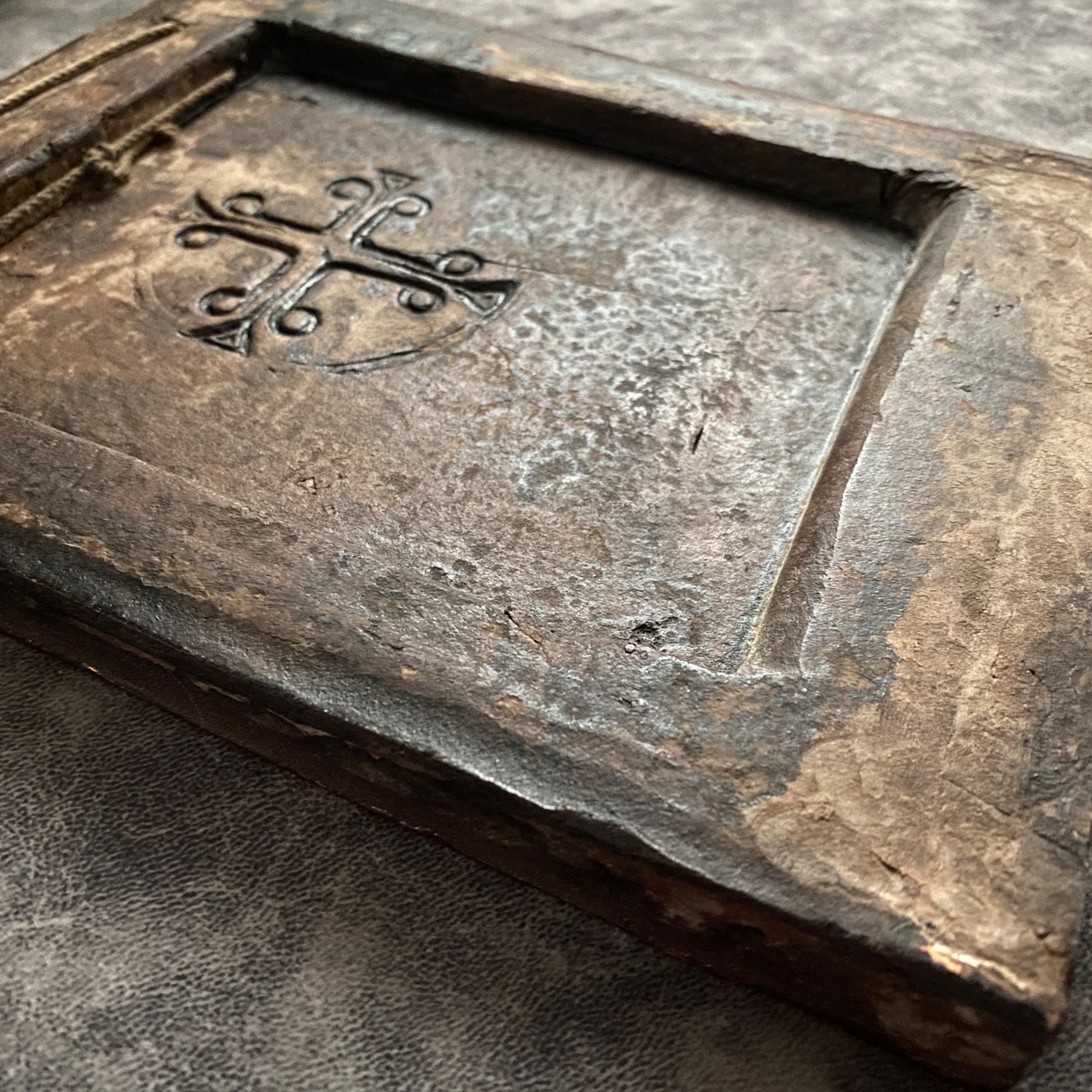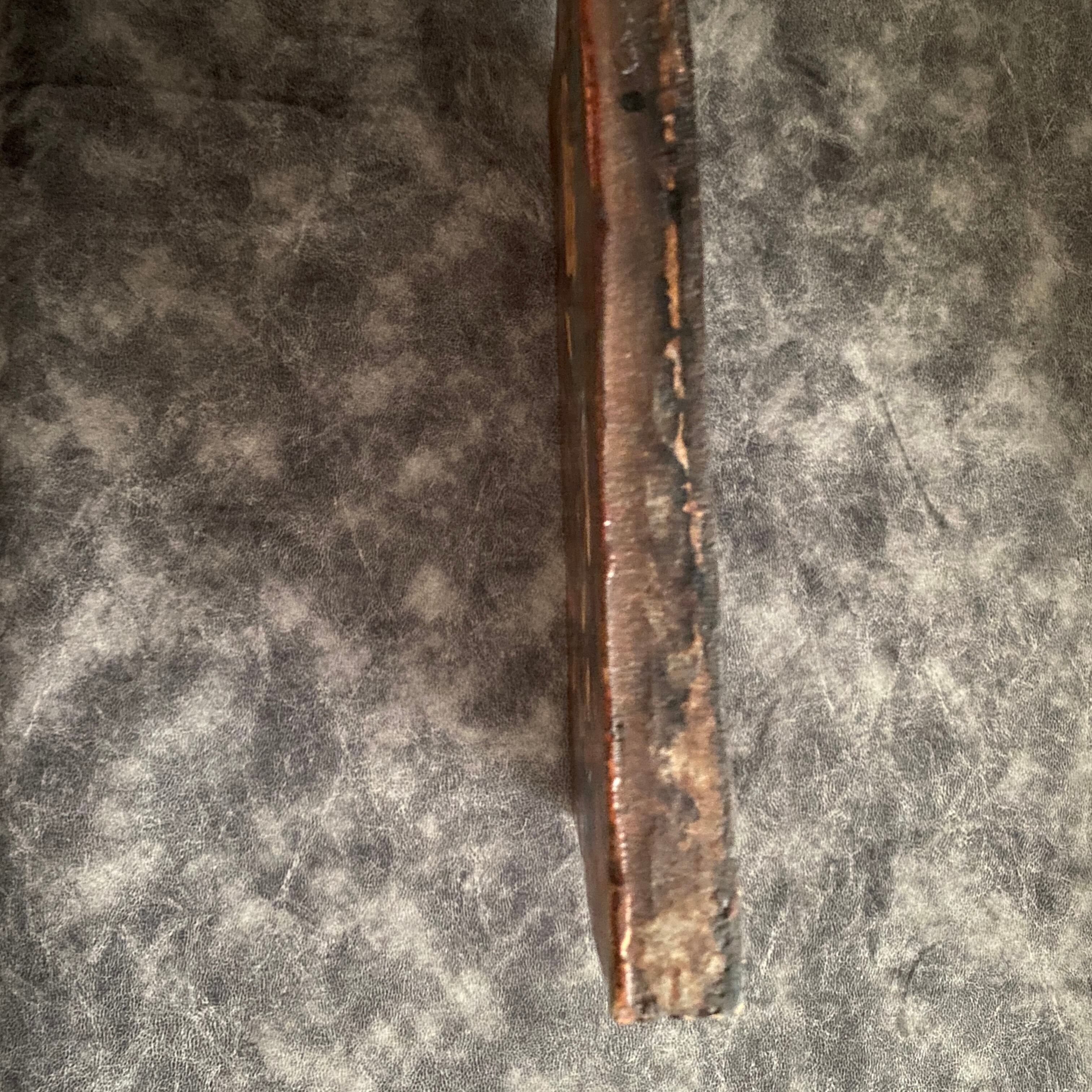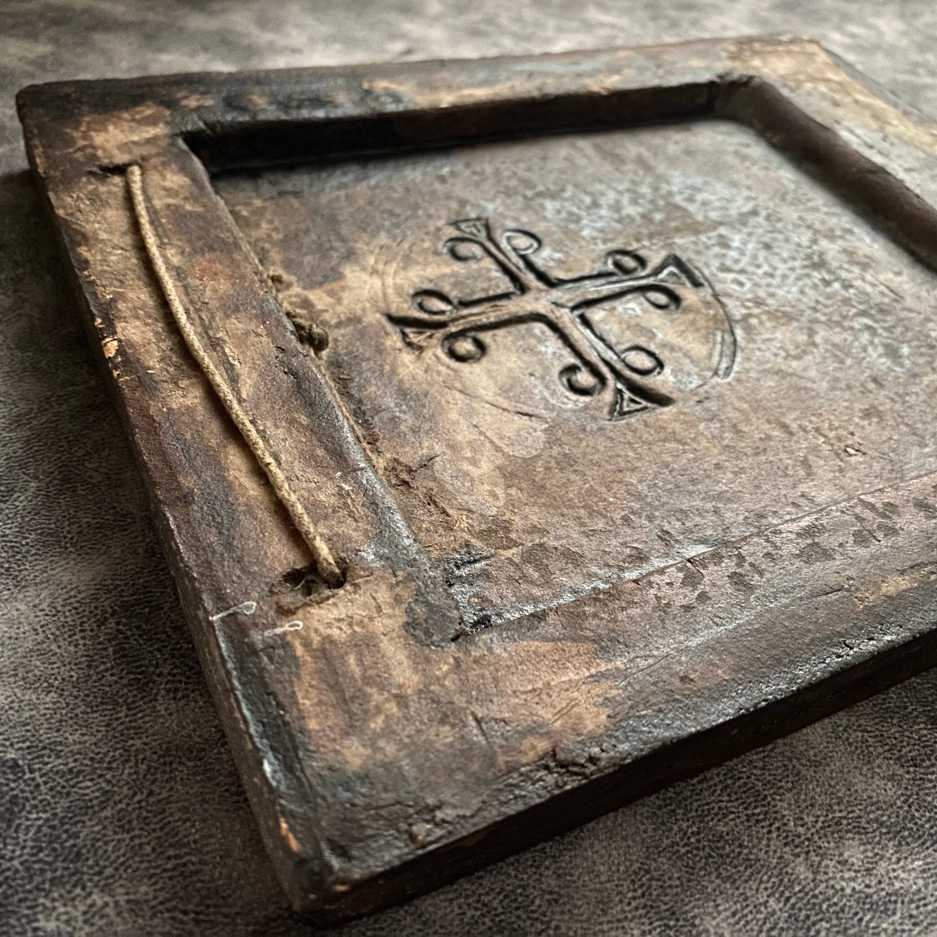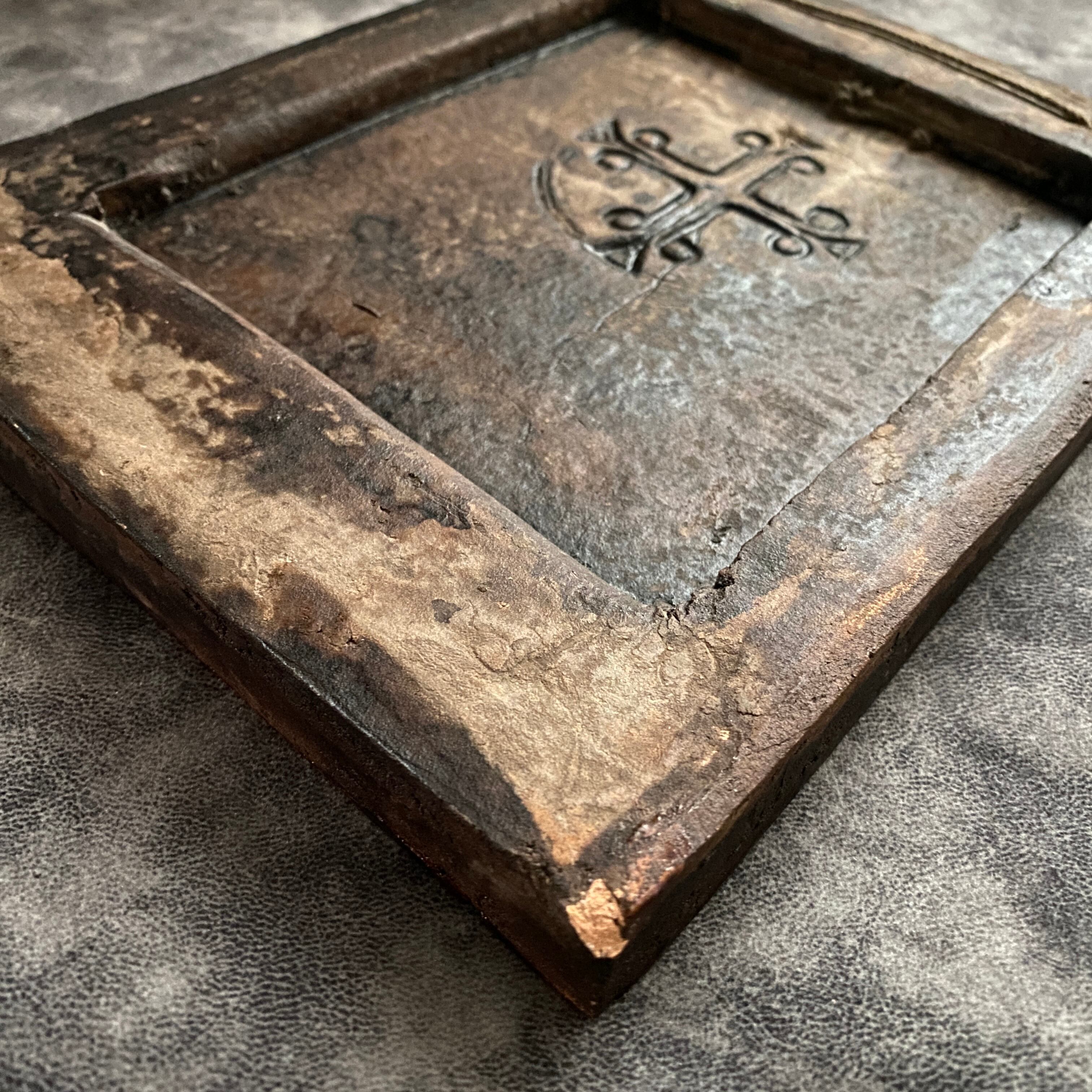 傷やひび割れなく、非常に良好なコンディション。背面にはオリジナルの刻印と吊り紐が付いています。