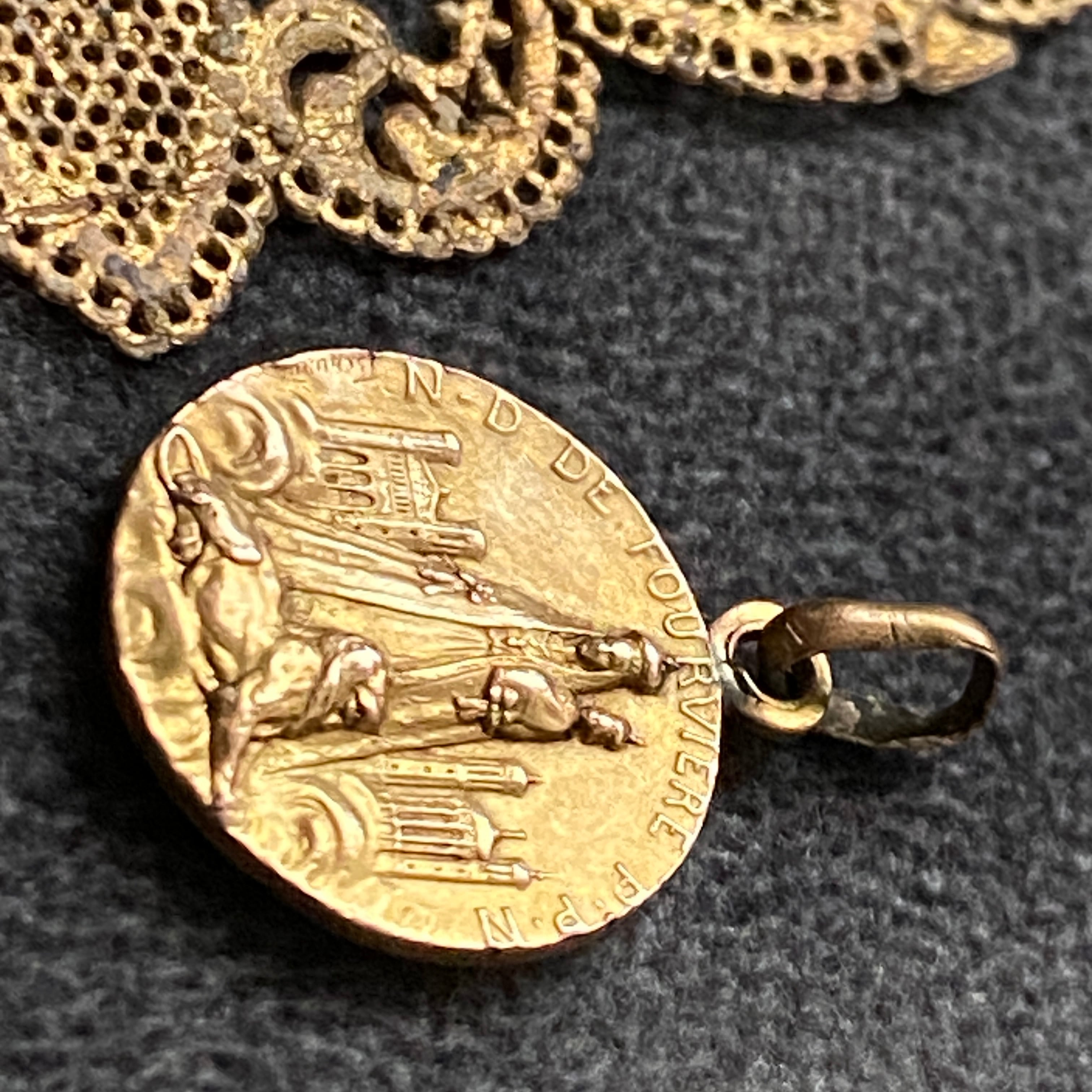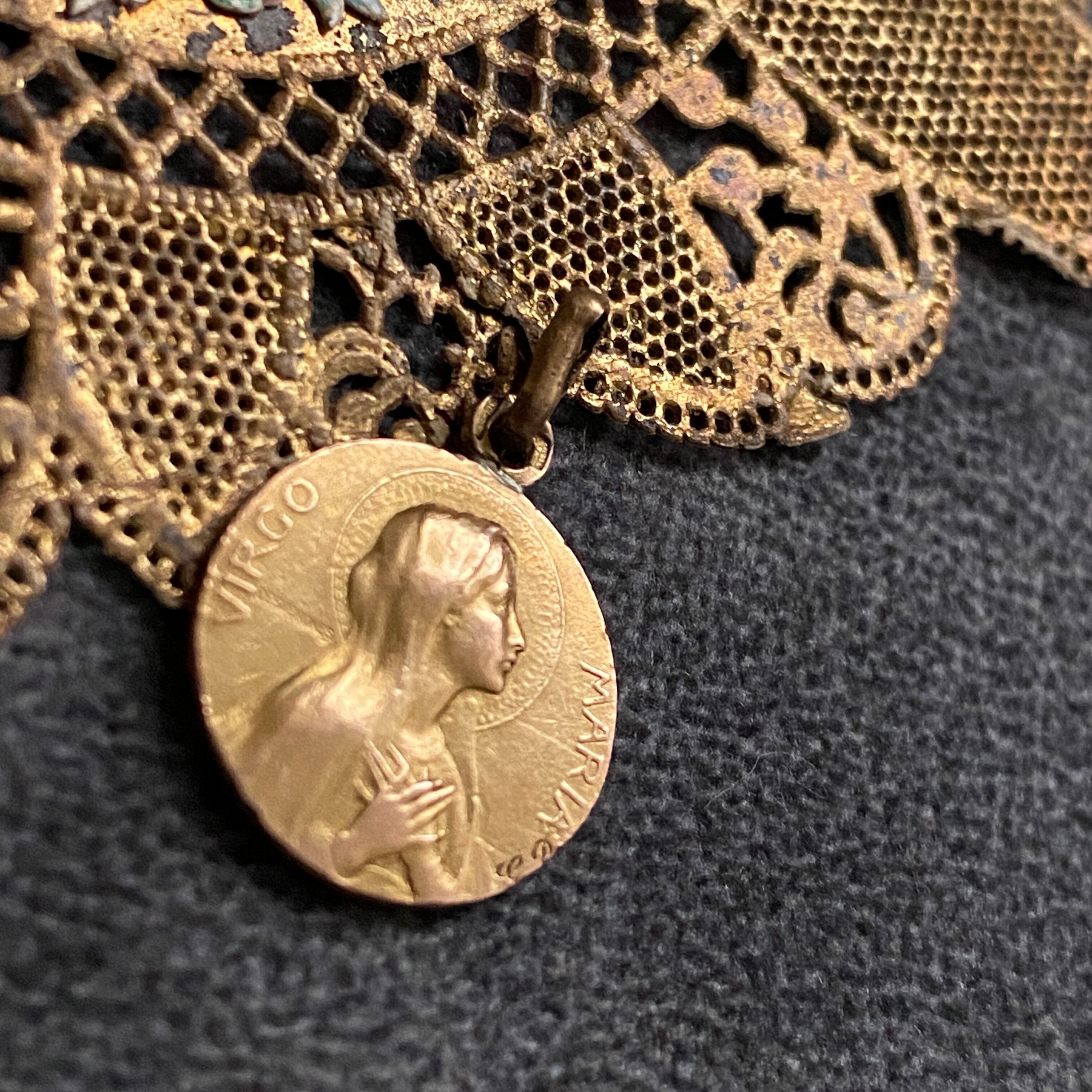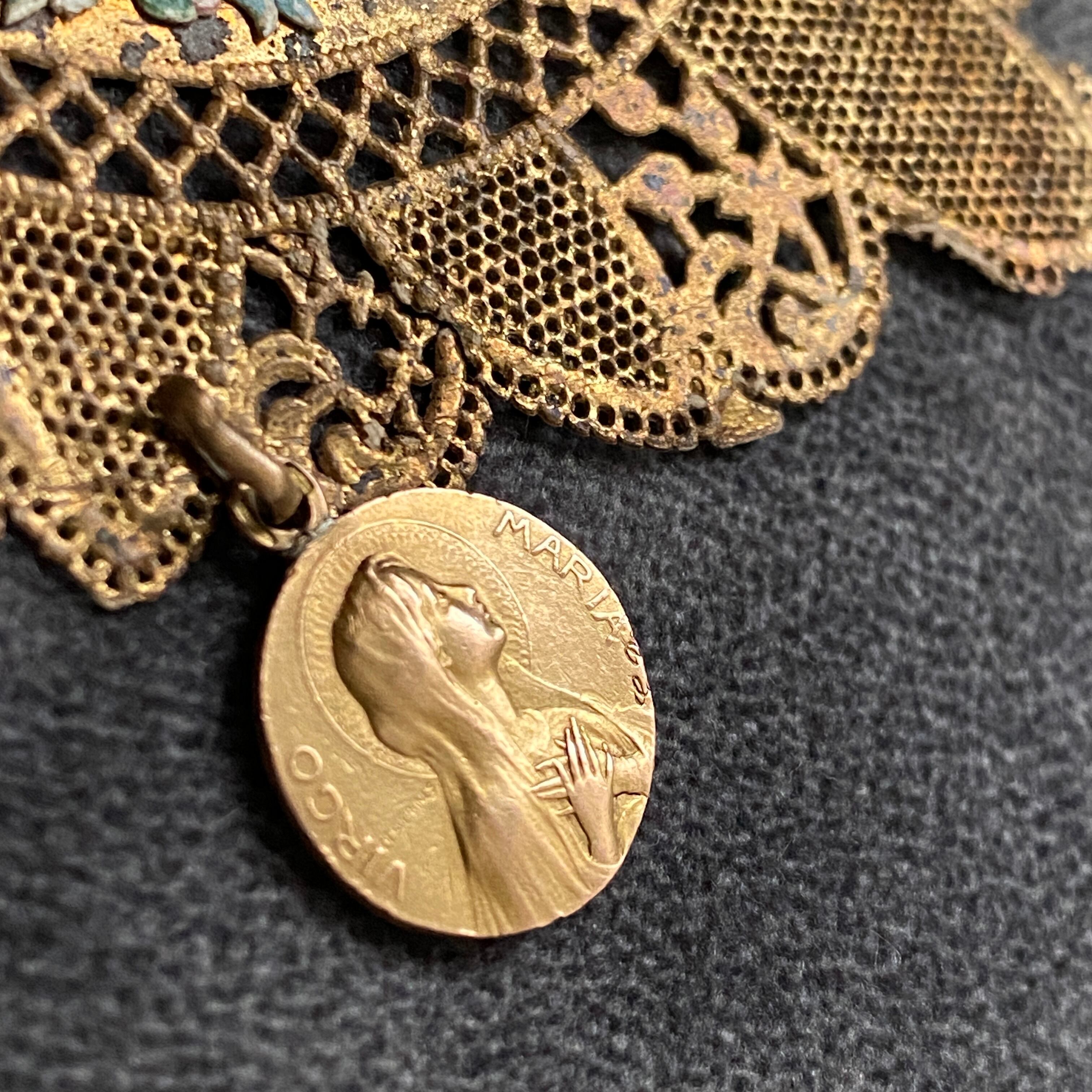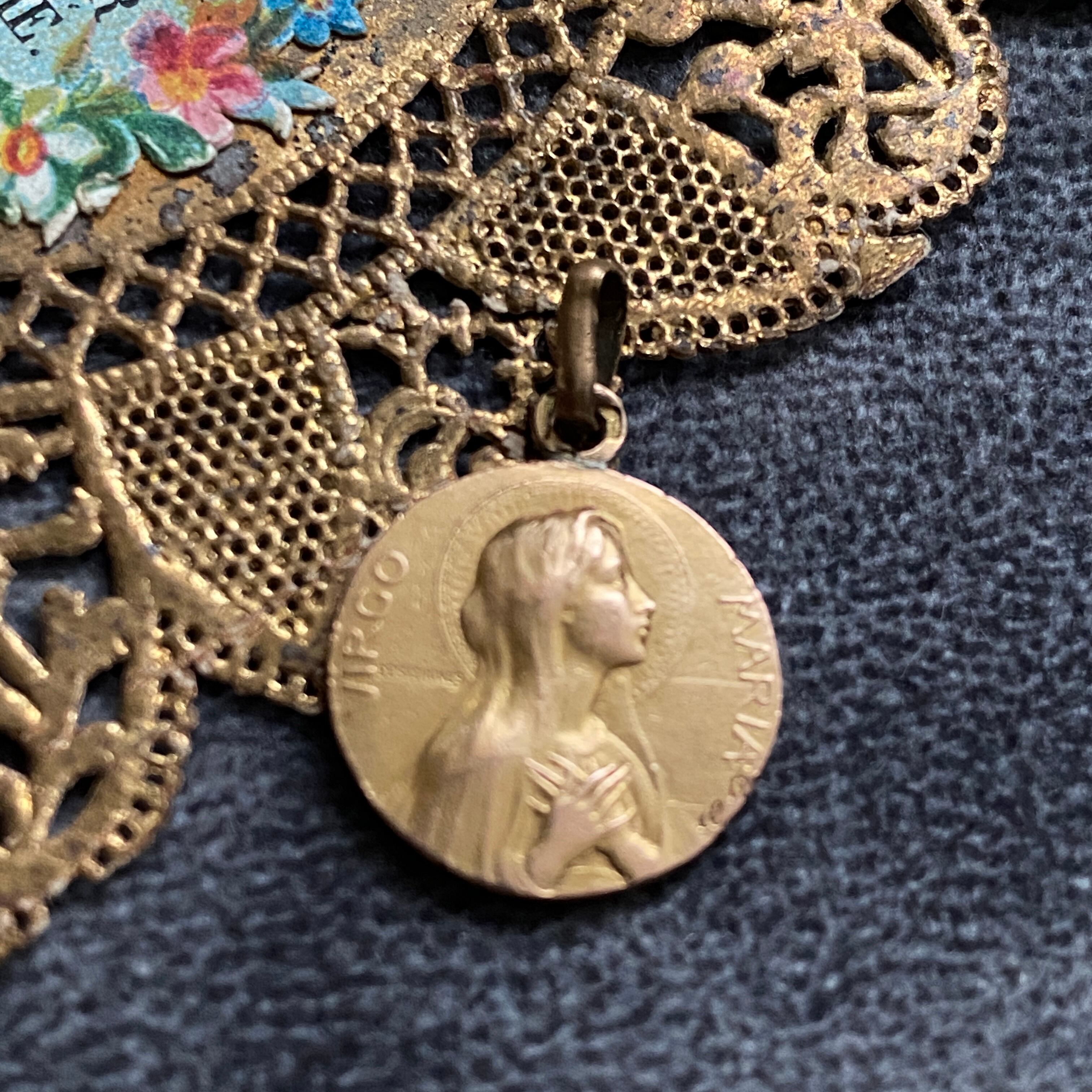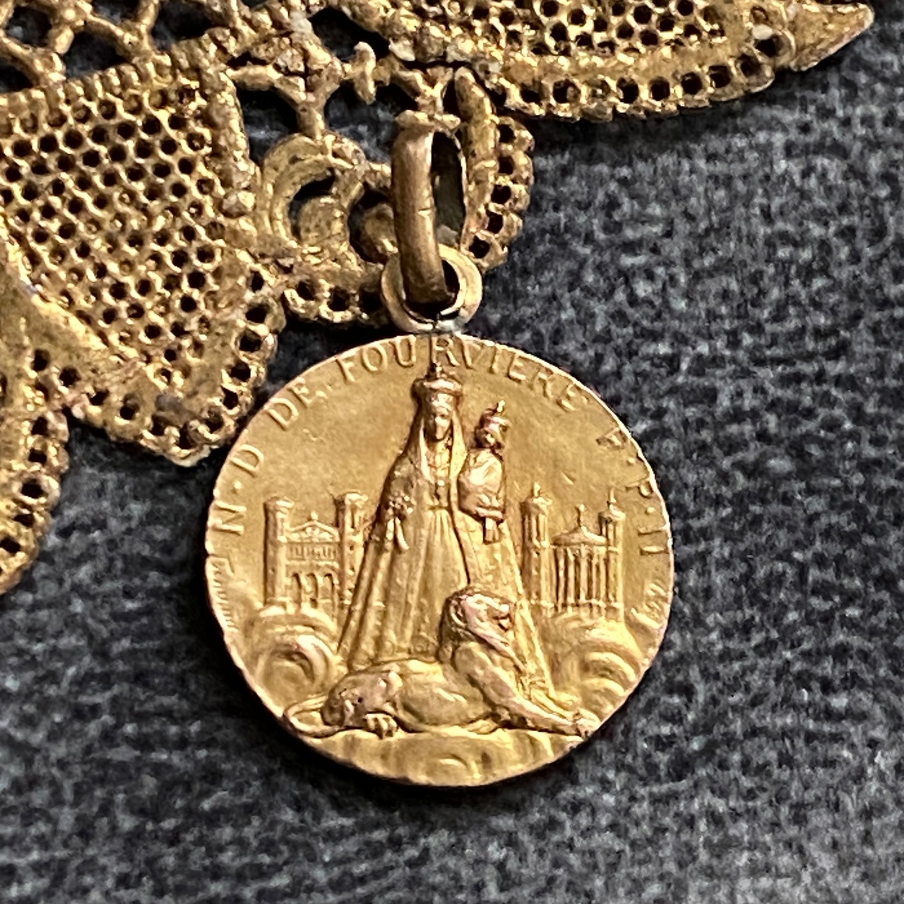 背面は、フルヴィエール大聖堂と叡智と勇気の象徴である獅子(ライオン)の守護神が描かれている素晴らしいスカプラリオになります。