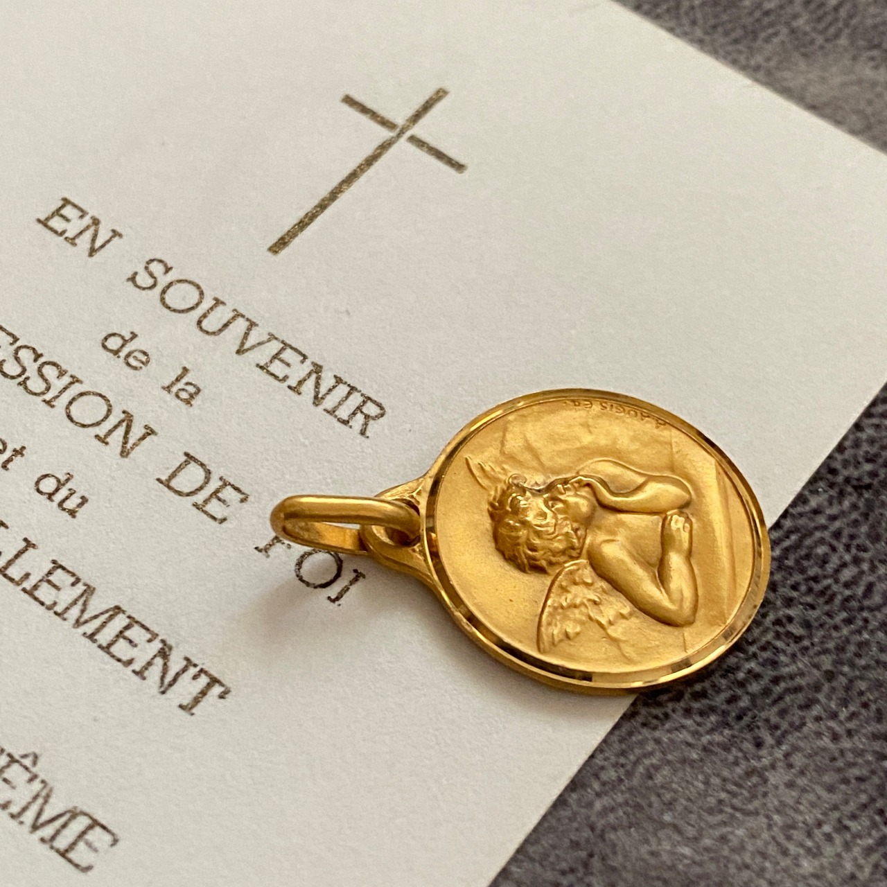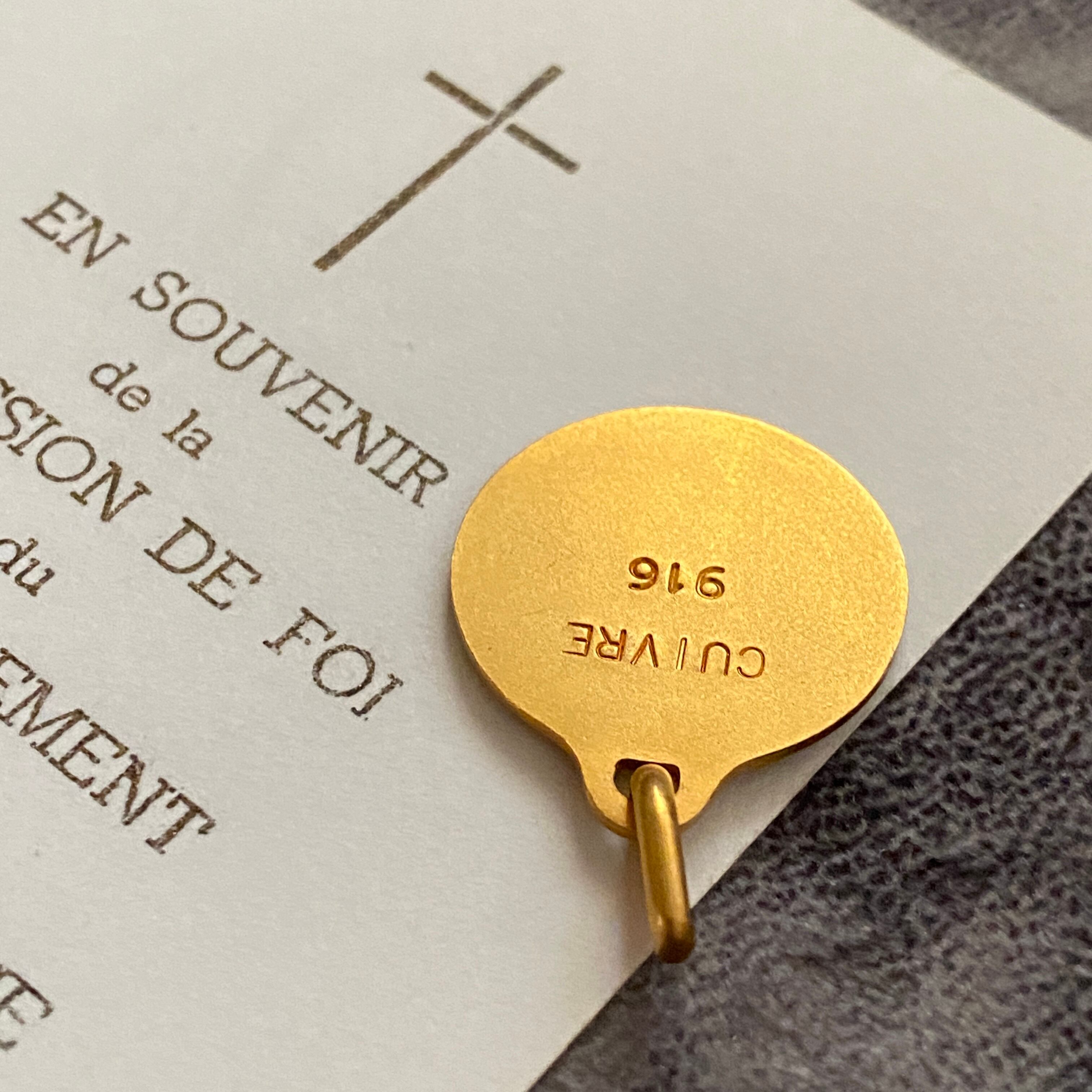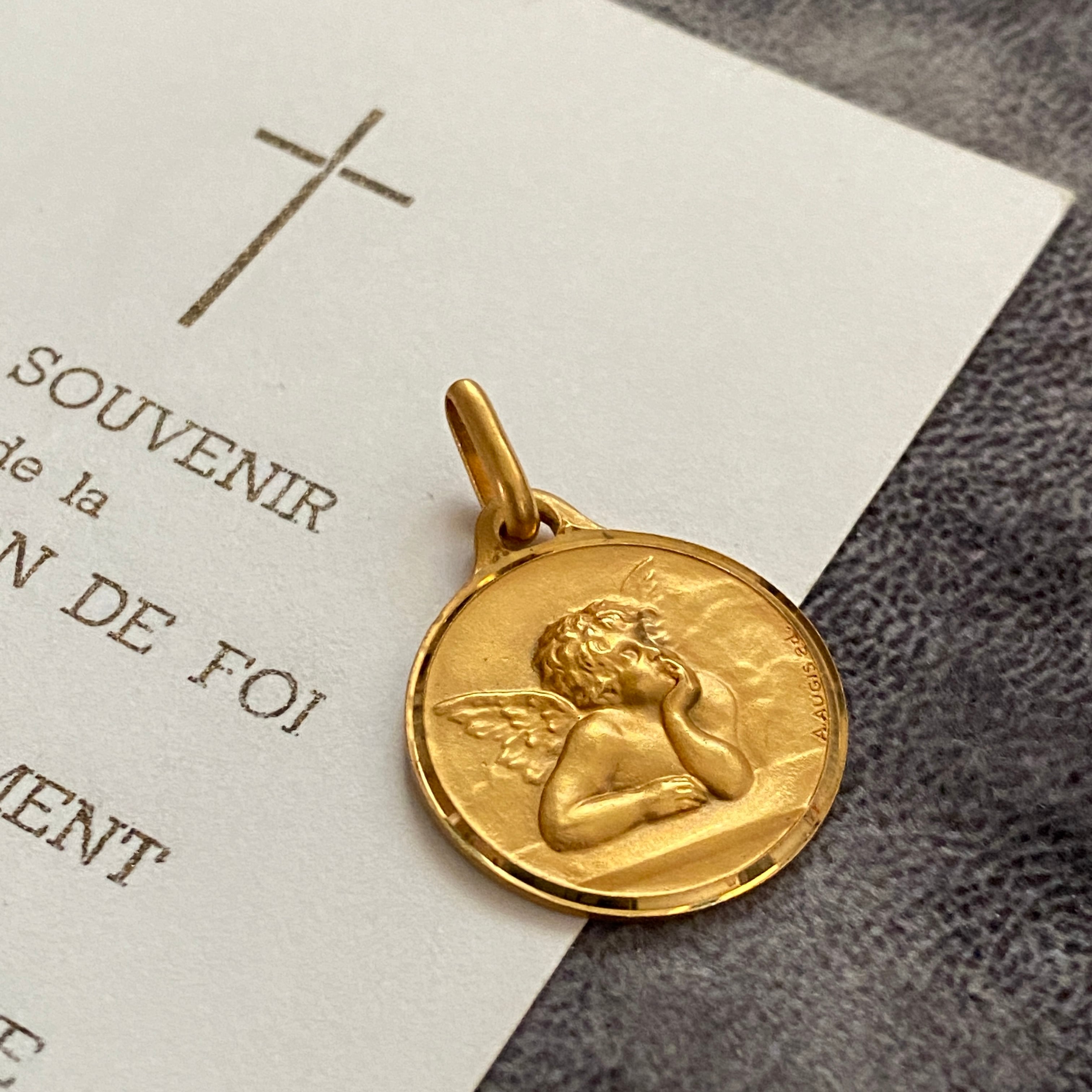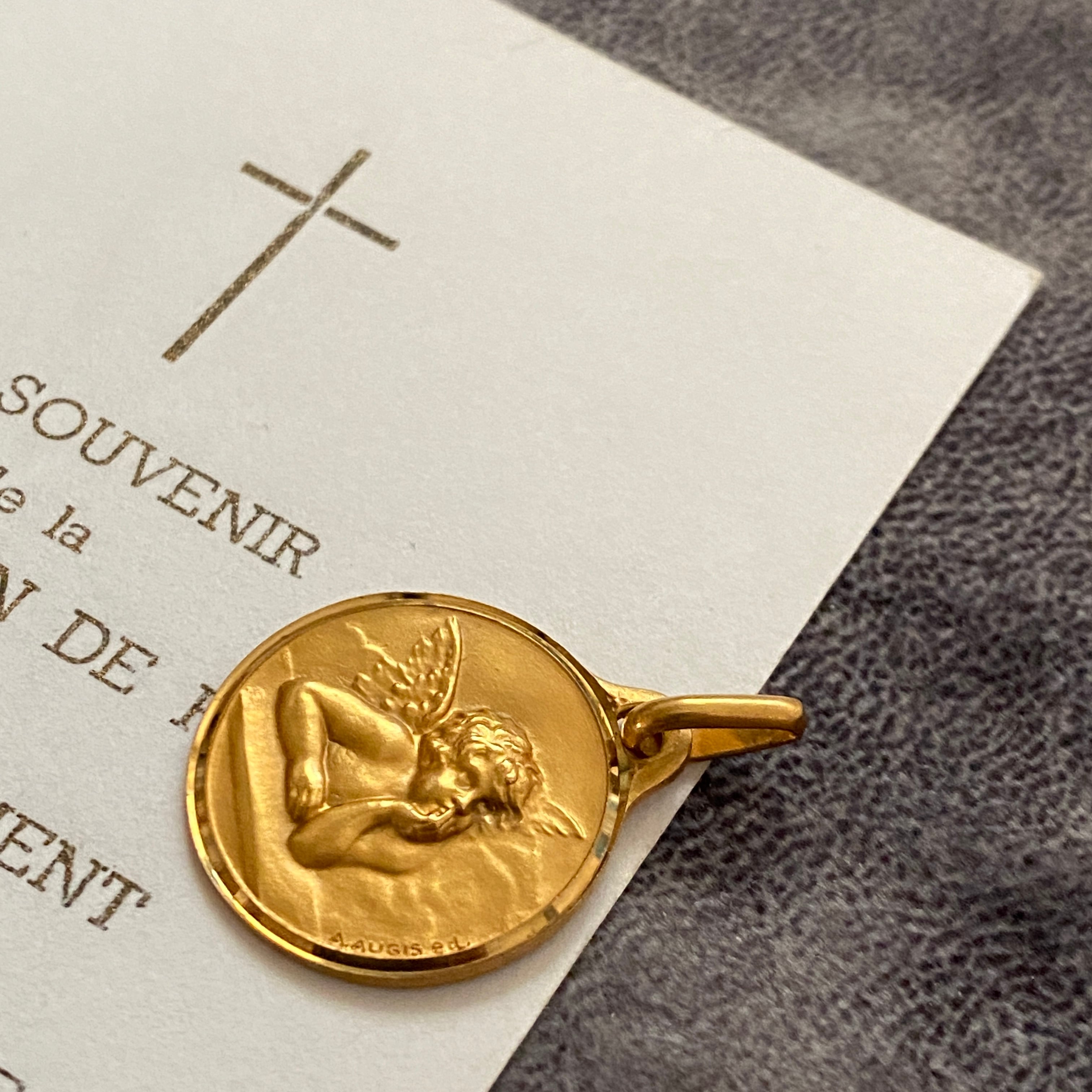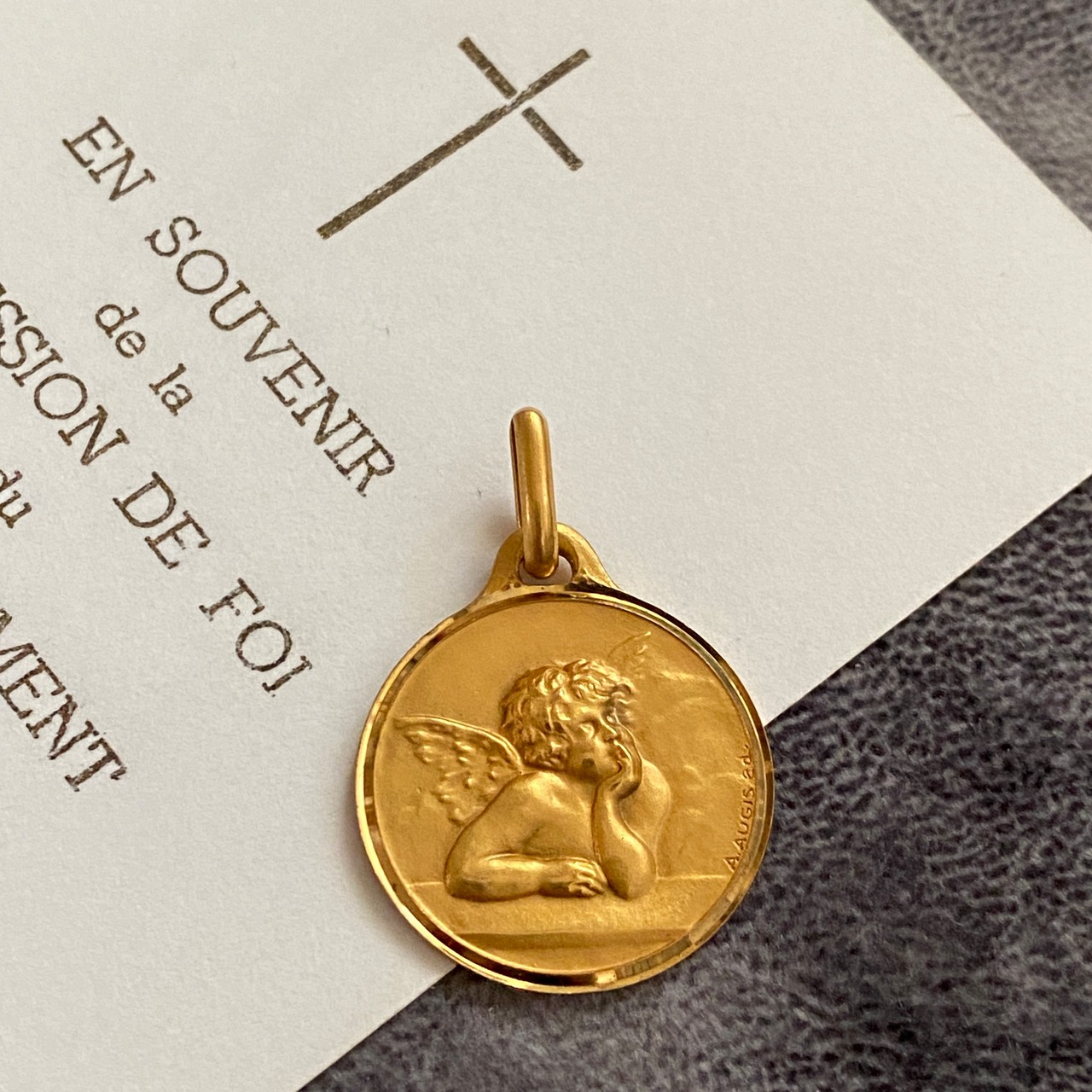 右下に刻印が読み取れます。Augis社 とは、1830年にフランスのリヨンで設立されたジュエリー工房で、聖品を中心に製造されているフランスを代表するブランドです。